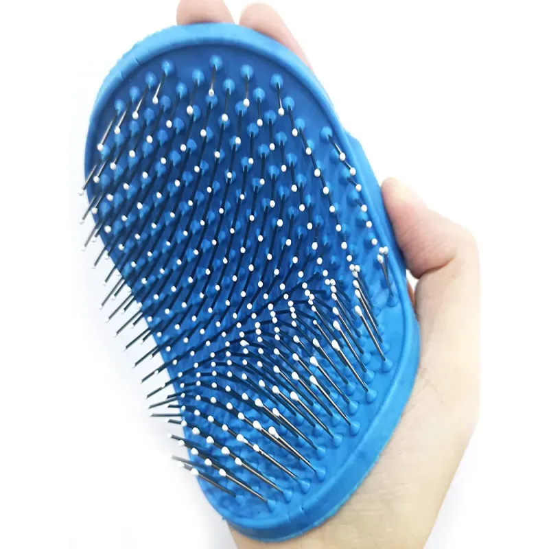 Szczotka posiada igły na końcu zakończone kulką aby podczas czesania nie ranić pupila i aby wyczesywanie było dla niego przyjemnością. Rączka została wykonana z gumy i nie wyślizguje się z dłoni. Jest regulowana za pomocą gumowego paska.