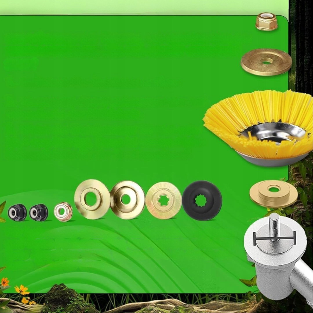 - Łatwa instalacja: szczotka do chwastów jest dostarczana z akcesoriami montażowymi. Jeśli dostarczone akcesoria nie pasują do maszyny, można zastosować inne odpowiednie elementy montażowe. Wystarczy zamocować szczotkę na głowicy roboczej urządzenia i przymocować odpowiednimi elementami, aby była gotowa do użycia.