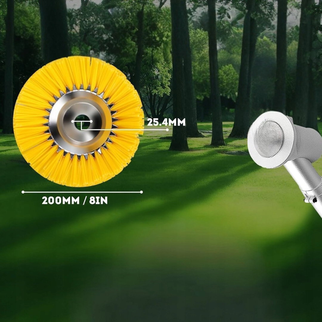 - Uniwersalna szczotka nylonowa: nylonowa szczotka do chwastów pasuje do spalinowych podkaszarek z mocowaniami 25,4 mm lub 20 mm oraz do wydajnych elektrycznych podkaszarek. Nie jest odpowiednia do bezprzewodowych podkaszarek.