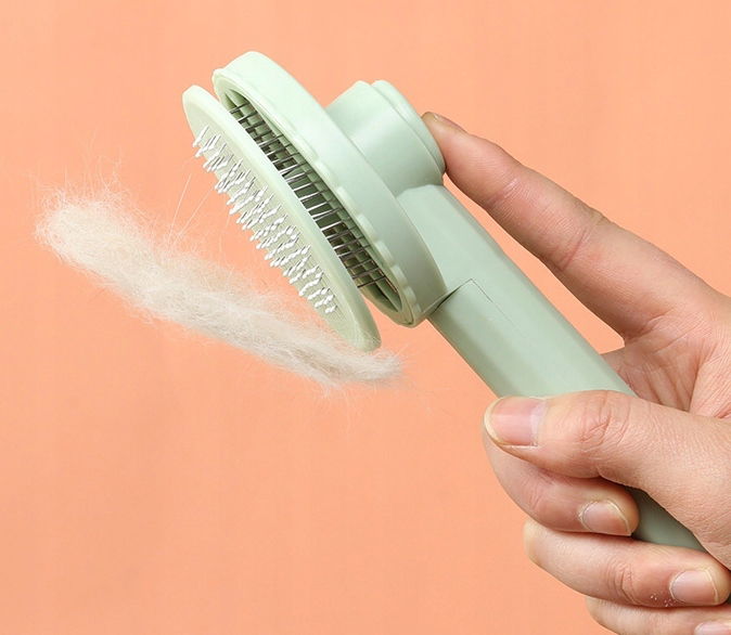 ⭐Główną cechą wyróżniającą tę szczotkę jest jej samoczyszczący mechanizm, który znacznie ułatwia proces usuwania sierści z narzędzia. Wystarczy kilka ruchów, aby pozbyć się zebranych włosów z powierzchni szczotki. Już nie musisz tracić czasu na ręczne oczyszczanie szczotki po każdym użyciu.