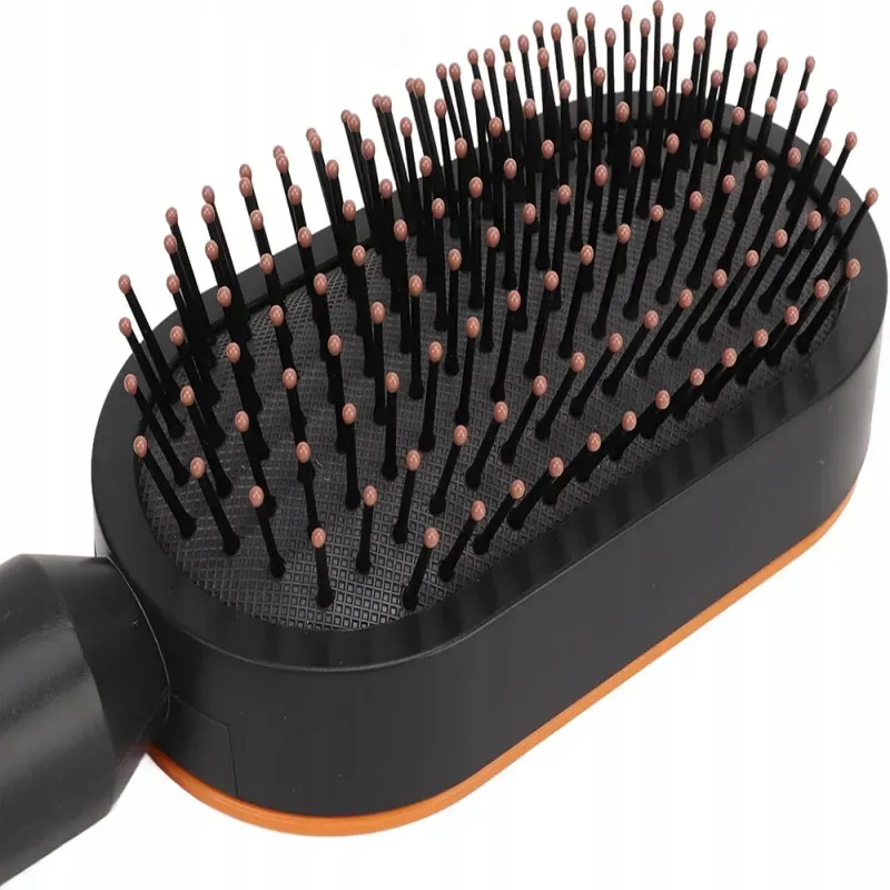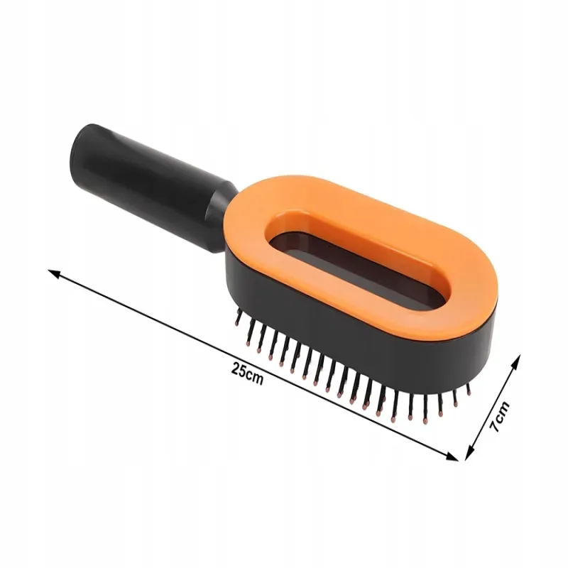 Szczotka posiada ergonomiczny uchwyt i nowoczesną, zamkniętą konstrukcję z otworem w środku – łatwą do trzymania, higieniczną i odporną na zabrudzenia. Wykonana z trwałego tworzywa ABS i nylonu, nie łamie włosów i nie elektryzuje ich podczas czesania, co czyni ją idealną dla osób z problemem puszenia się i elektryzowania włosów. To świetny wybór do codziennego użytku, jak i do zabrania w podróż.