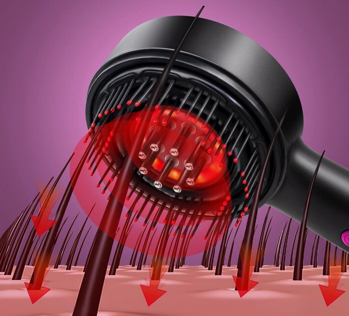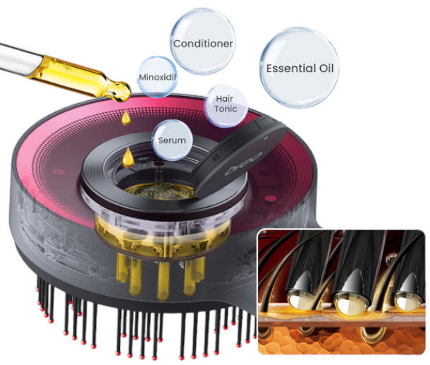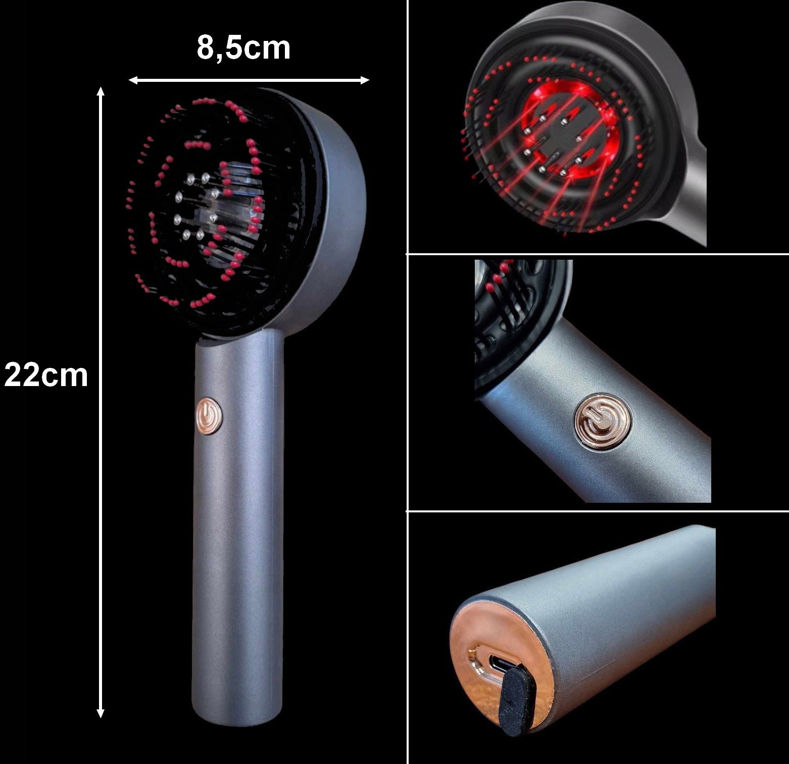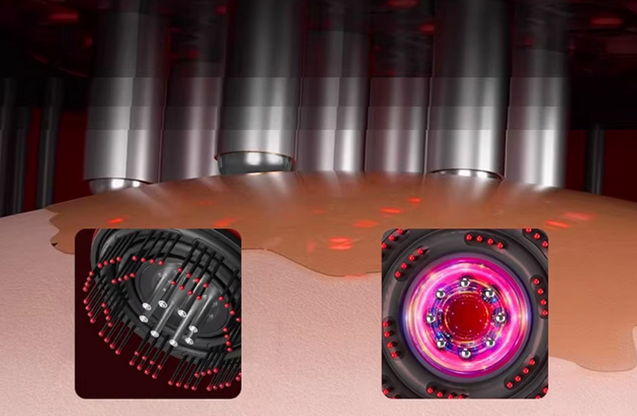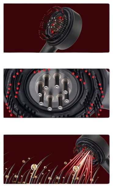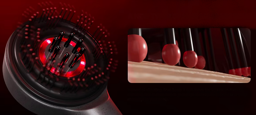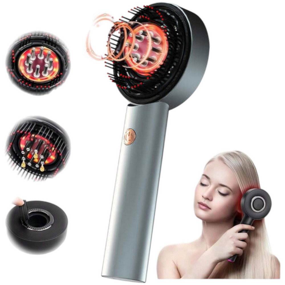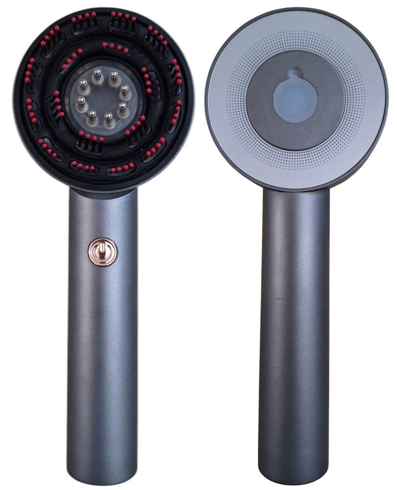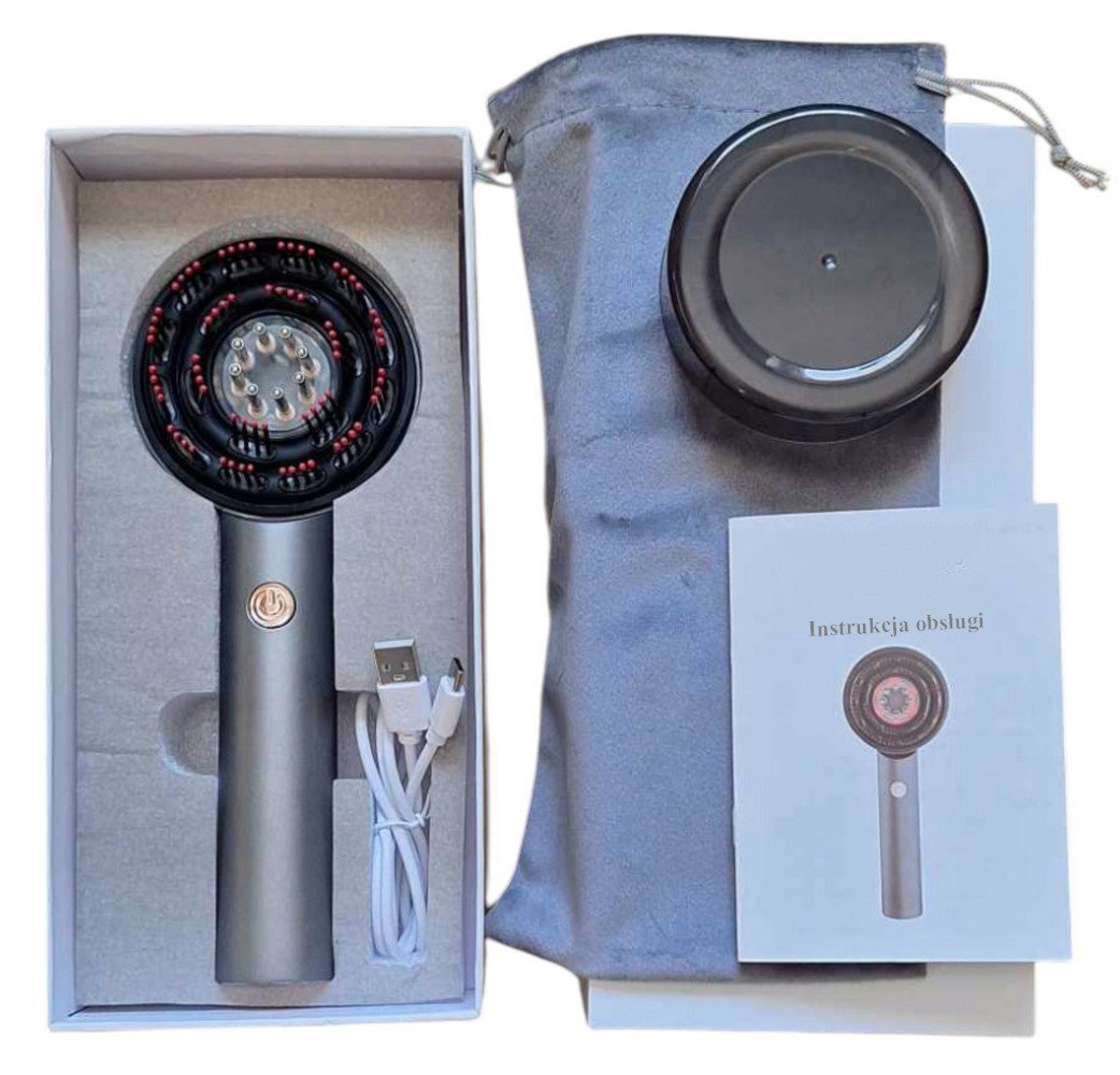 ✔️ Masuje skórę głowy – delikatne wibracje lub rotacyjne ruchy poprawiają krążenie krwi, co sprzyja dotlenieniu cebulek włosów i może wspierać ich wzrost.