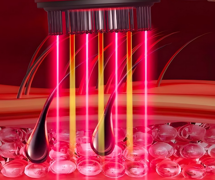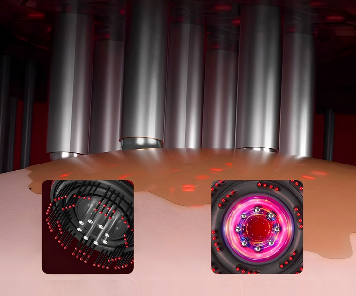 ✔️ Terapia światłem w naszym urządzeniu światło LED, np. czerwone, może dodatkowo stymulować regenerację skóry i wzrost włosów.