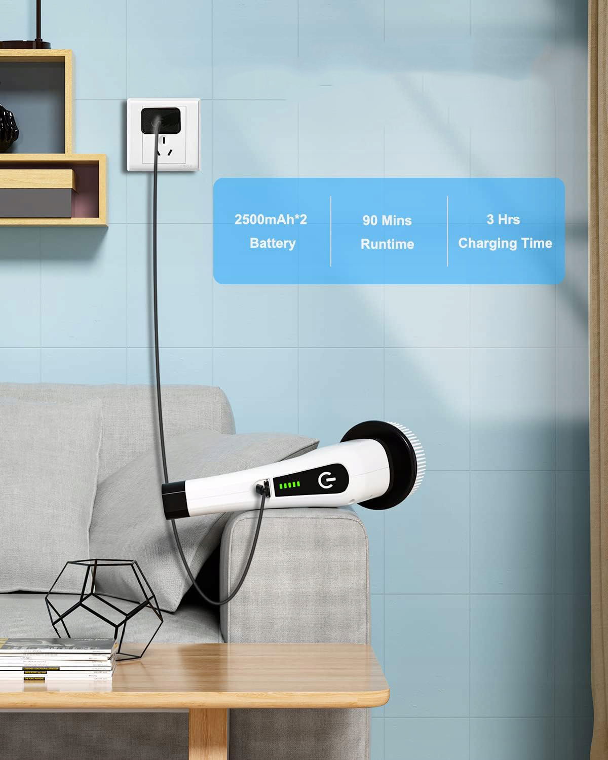- 90 minut pracy: Po pełnym naładowaniu w ciągu 3 godzin za pomocą kabla USB-C i ładowarki sieciowej.