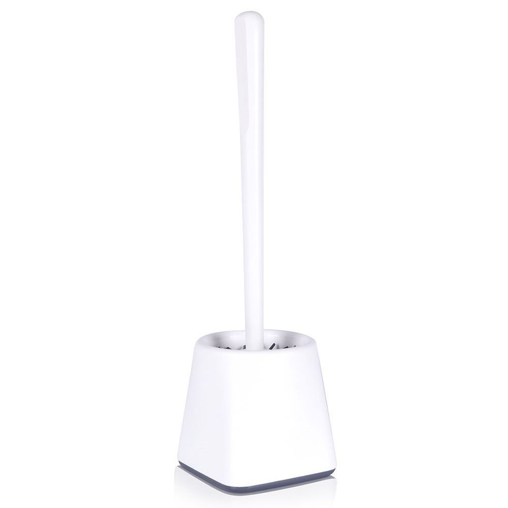 WYTRZYMAŁA - Pojemnik oraz uchwyt szczotki wykonane z wysokiej jakości tworzywa w kolorze białym. Włosie szczotki wykonane z silikonu w kolorze grafitowym.