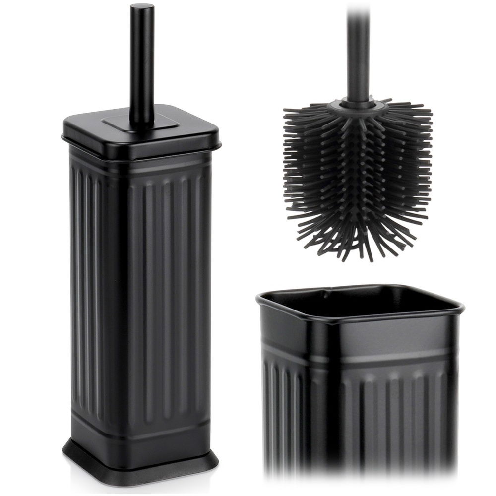 SZCZOTKA SILIKONOWA TOALETOWA WC POJEMNIK STOJAK OCIEKACZ CZARNA ŁAZIENKOWA
