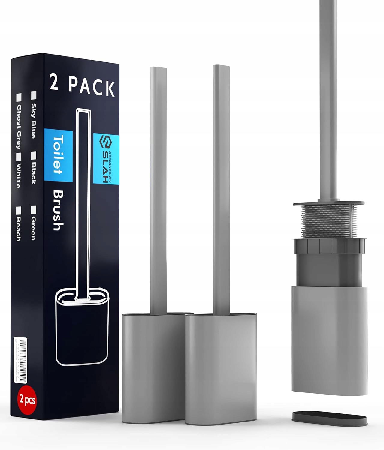 Zestaw 2 silikonowych szczotek toaletowych | Wolnostojące lub zawieszane | Szare | Montaż bez wiercenia