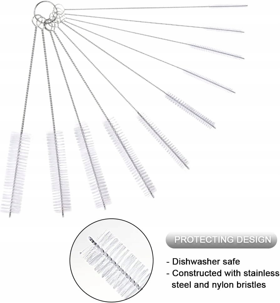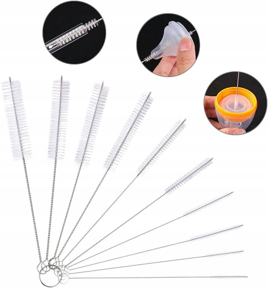 Szczotki czyszczące Vicloon, zestaw 10 szczotek do czyszczenia butelek, szczotka do rurek do mleka, zestaw nylonowych szczotek do probówek, dysza do czajnika, słomki do picia (białe)