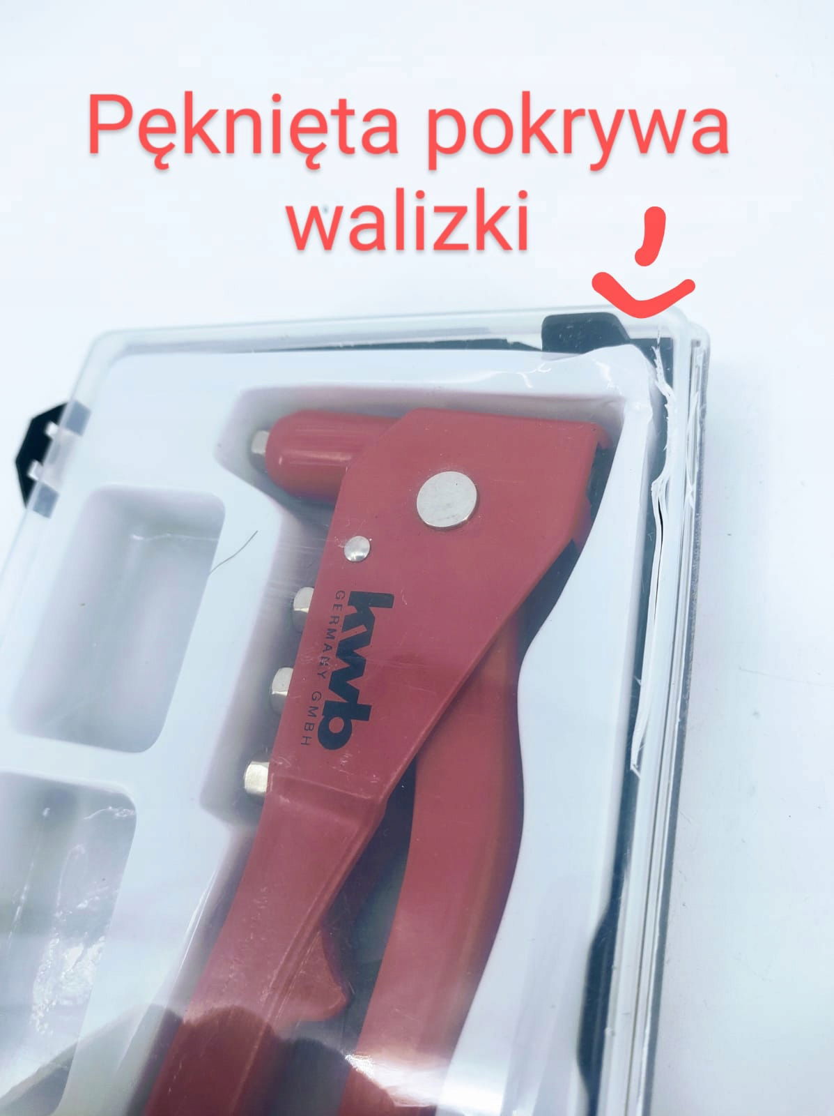 STAN: Produkt został zwrócony, Został użyty. Znikome ślady użytkowania, pęknięta pokrywa walizki oraz brak dwóch rozmiarów nitów w zestawie. Ktoś prawdopodobnie wykorzystał te brakujące nity w zestawie i zwrocil narzędzie