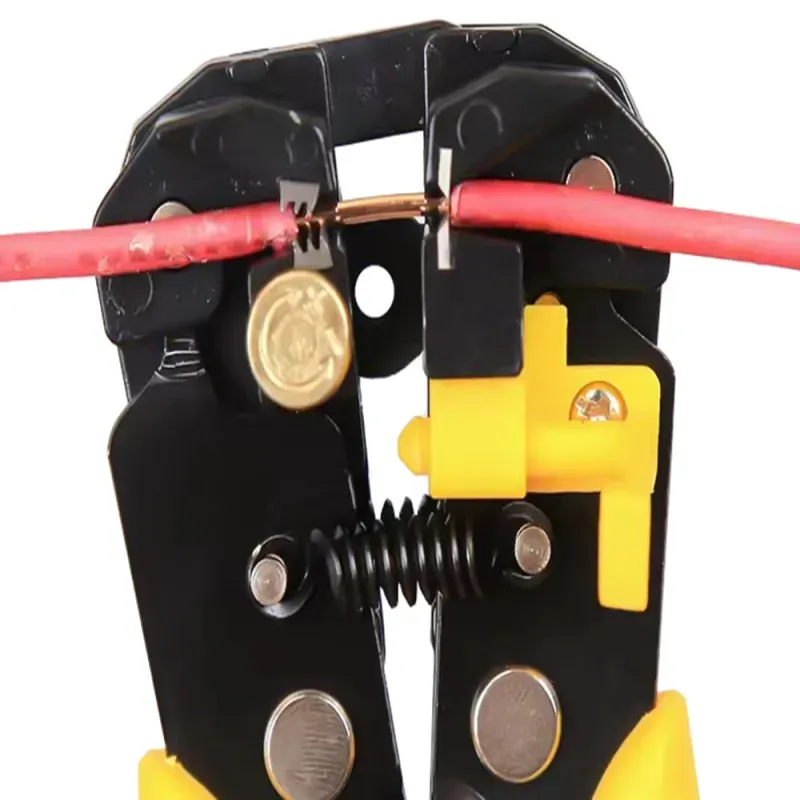 To praktyczne narzędzie umożliwia szybkie i precyzyjne usuwanie izolacji z kabli jedno- lub wielożyłowych. Aby zdjąć izolację, należy włożyć kabel w szczęki, tak aby przylegał do narzędzia, a następnie ścisnąć uchwyt.