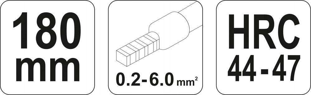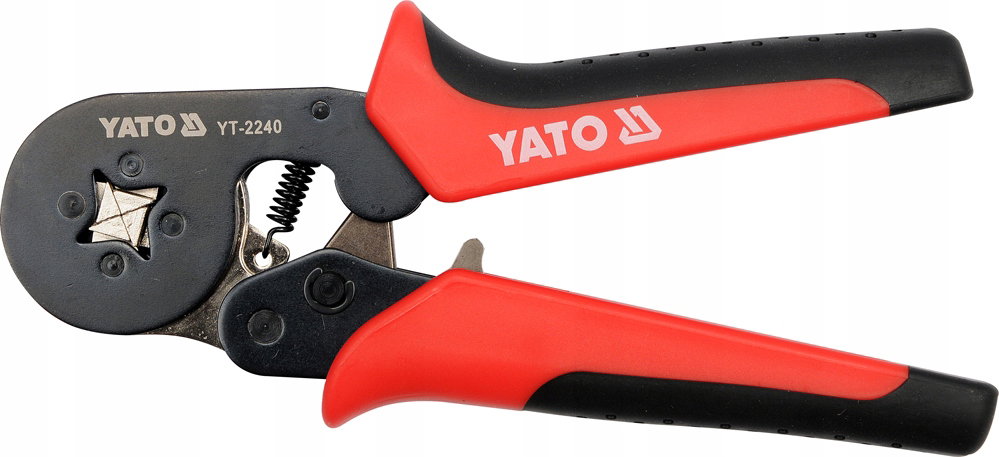 Szczypce YT-2240 do zaciskania konektorów tulejowanych, z czernioną powierzchnią, która zabezpiecza przed korozją oraz dwukomponentowymi nakładkami na rękojeść z tworzywa sztucznego.