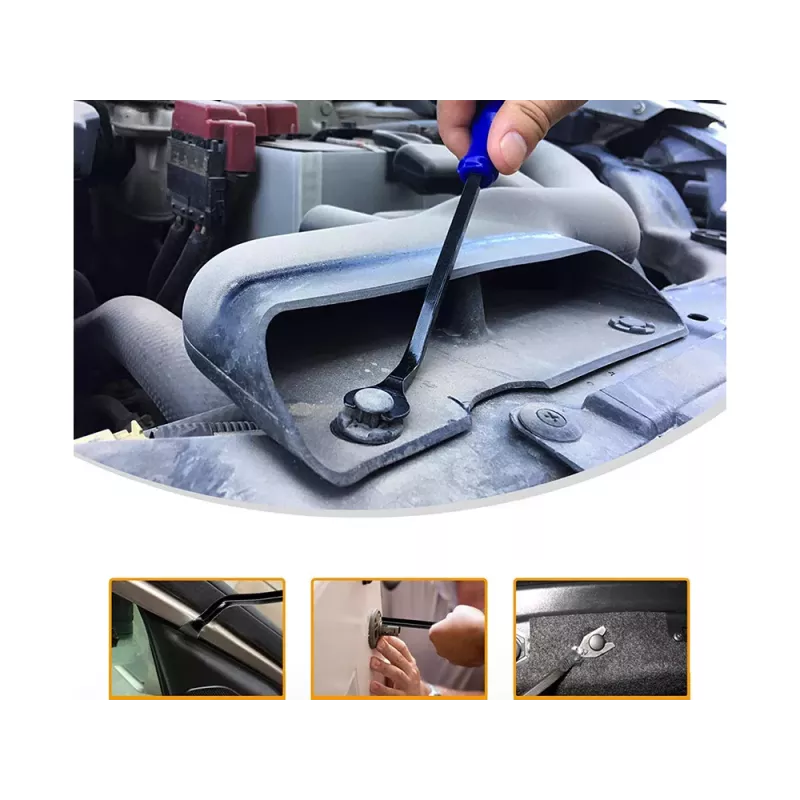 Specjalistyczne ściągacze do demontażu tapicerki, spinek i listew samochodowych. Przydają się również przy wyjmowaniu radia samochodowe, licznika, sprzętu elektronicznego na zatrzaski. Otwieraki wykonane z mocnego tworzywa, dzięki nim nie wyszczerbisz rantów tapicerki podczas jej podważania.