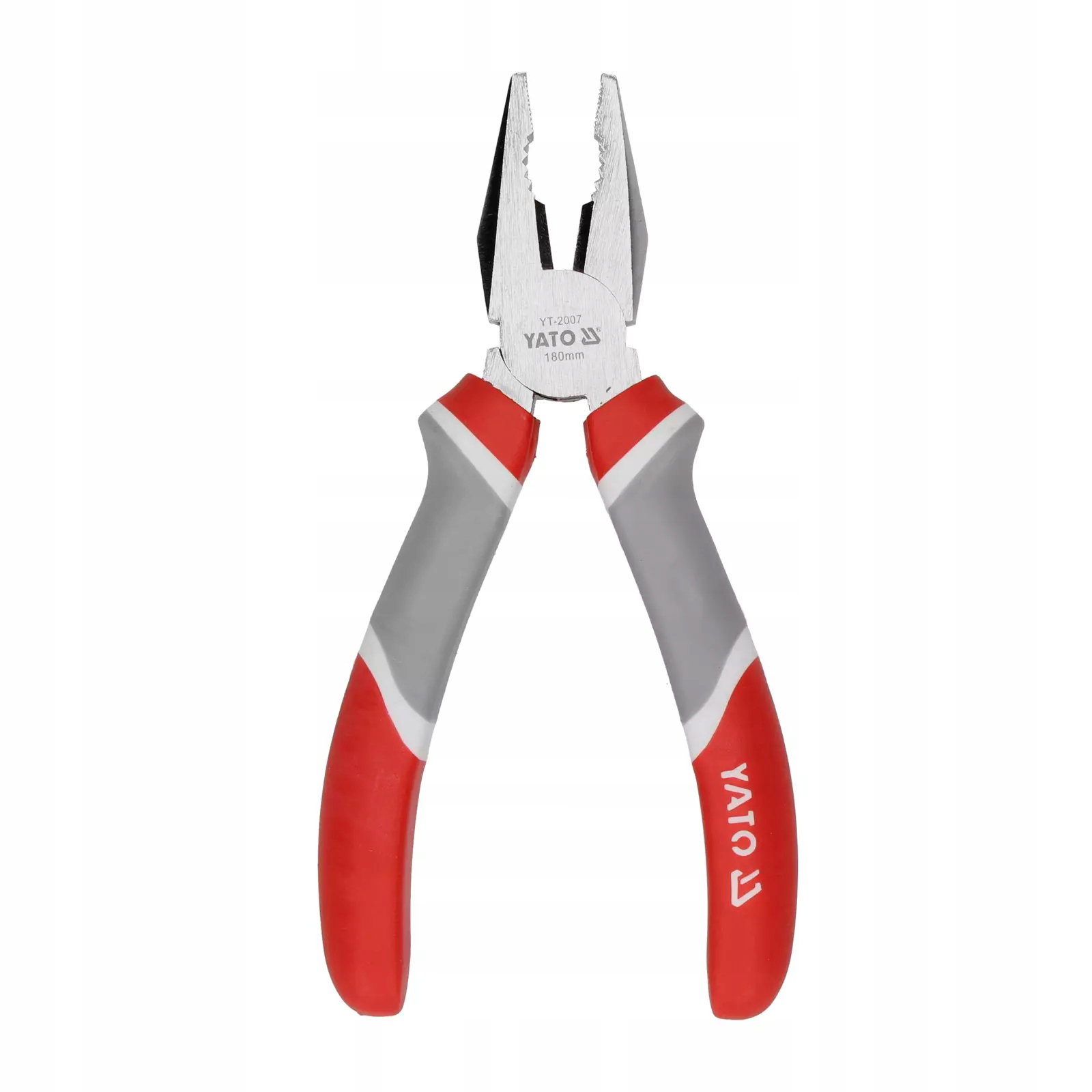 Szczypce uniwersalne o długości 180 mm marki YATO. Standardowy kształt szczęk z bardzo precyzyjnie wykonanymi żłobieniami oraz wytrzymałym elementem tnącym. Rękojeści osłonięte wygodnymi, plastikowymi, trójkomponentowymi nakładkami.