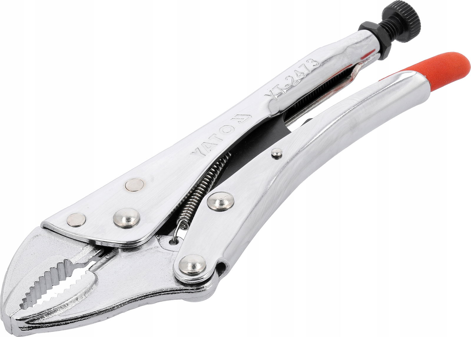 Szczypce zaciskowe Morse'a o długości 250 mm z zaokrąglonymi szczękami. Przeznaczone do prac spawalniczych, ślusarskich i montażowych. Posiadają regulację śrubową rozwarcia umożliwiające dostosowanie rozstaw szczęk w zależności od grubości chwytanego materiału.