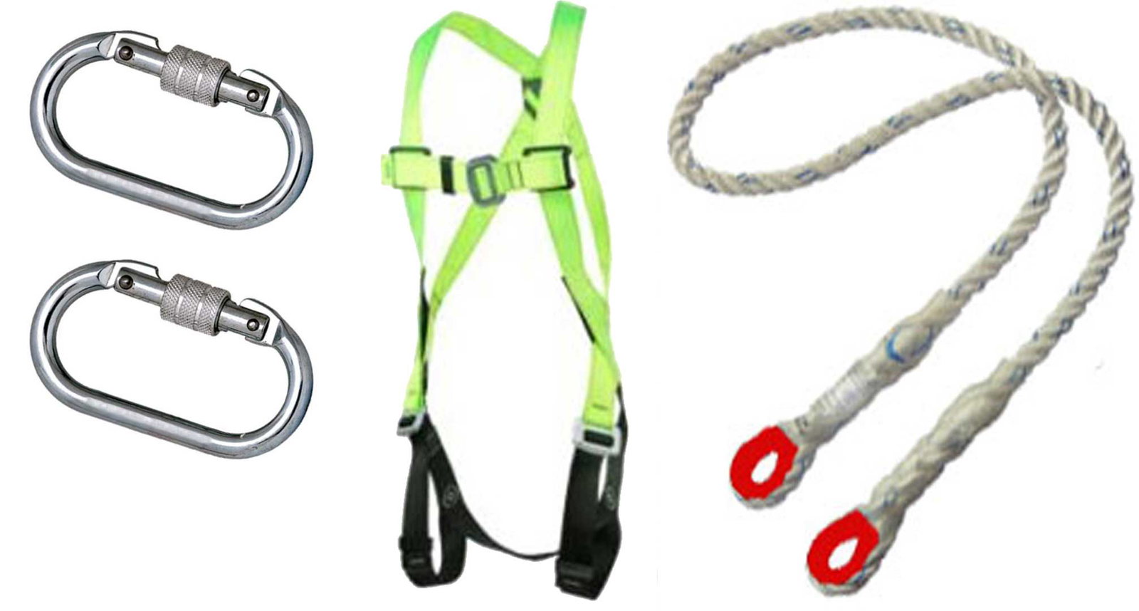 Szelki ASEKURACYJNE uprząż bezpieczeństwa + linka + zaczepy zestaw komplet