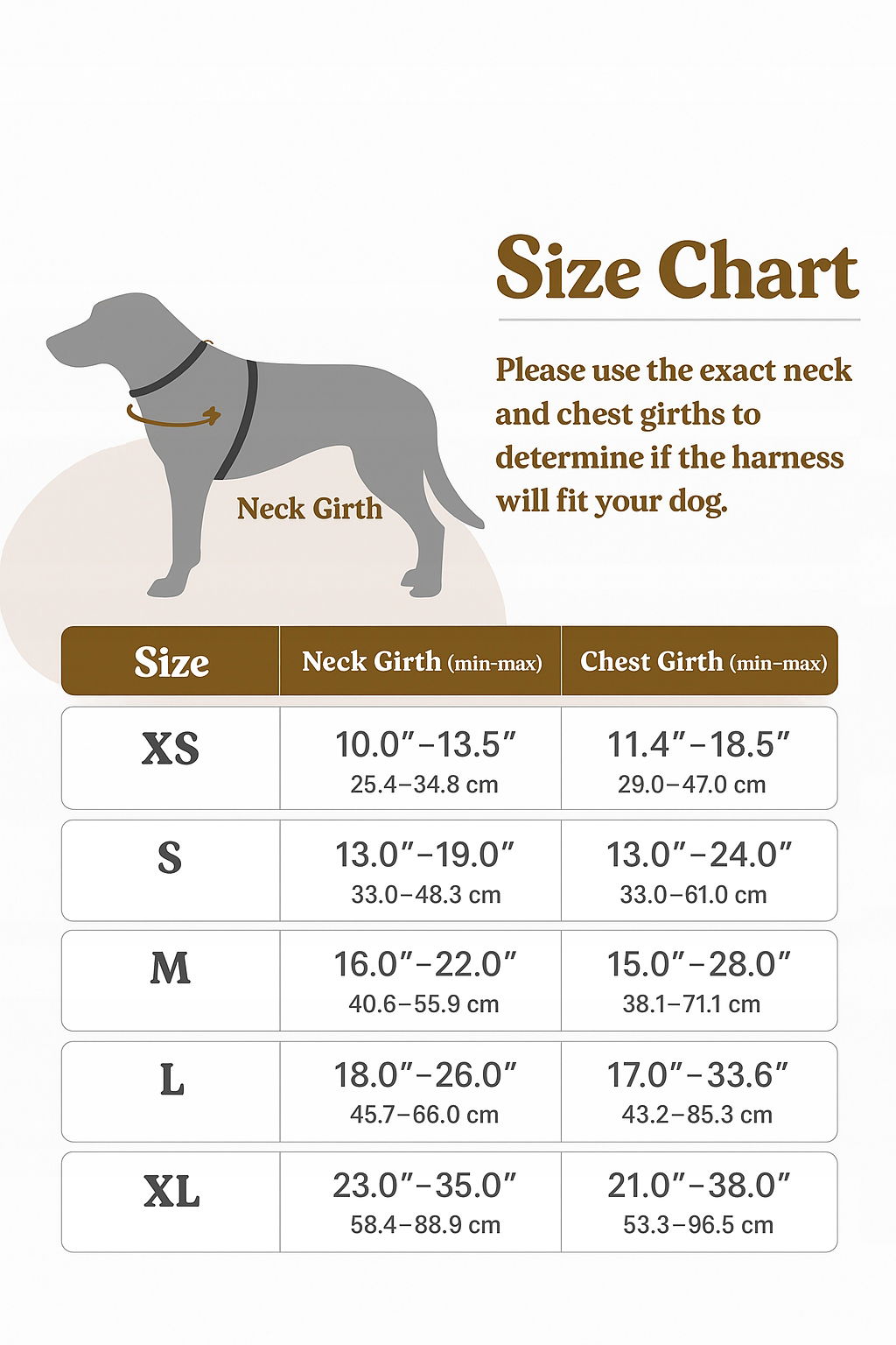 Idealne dopasowanie - uprząż ma 4 łatwe do regulacji paski wokół ciała. Możesz użyć 2 pasków na szyję i 2 pasków na klatkę piersiową, aby stworzyć idealne dopasowanie dla swojego psa z pewną przestrzenią wzrostu.