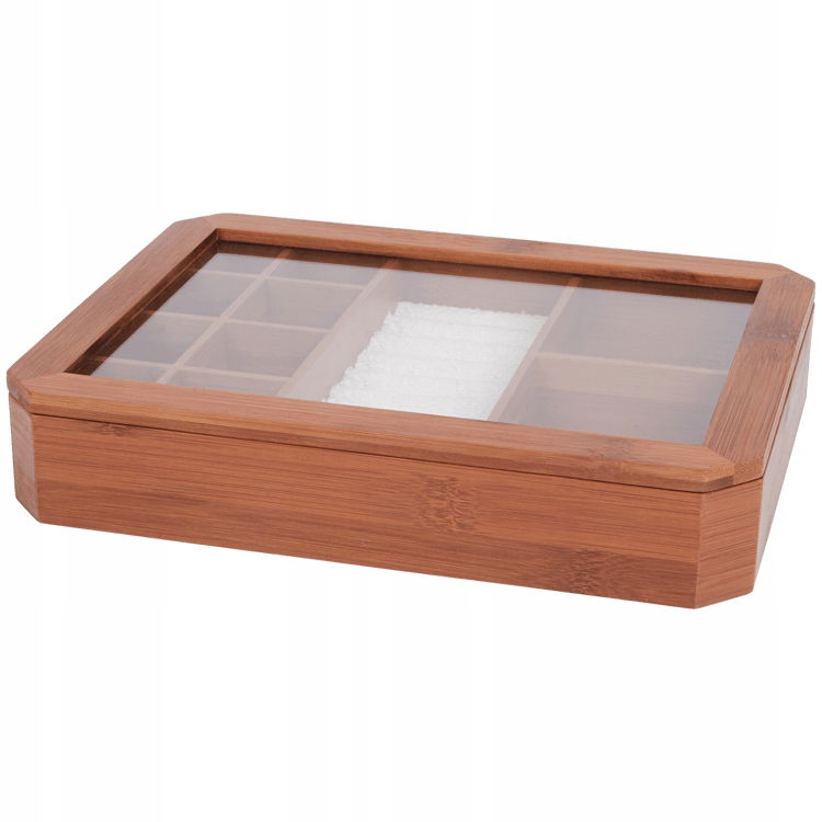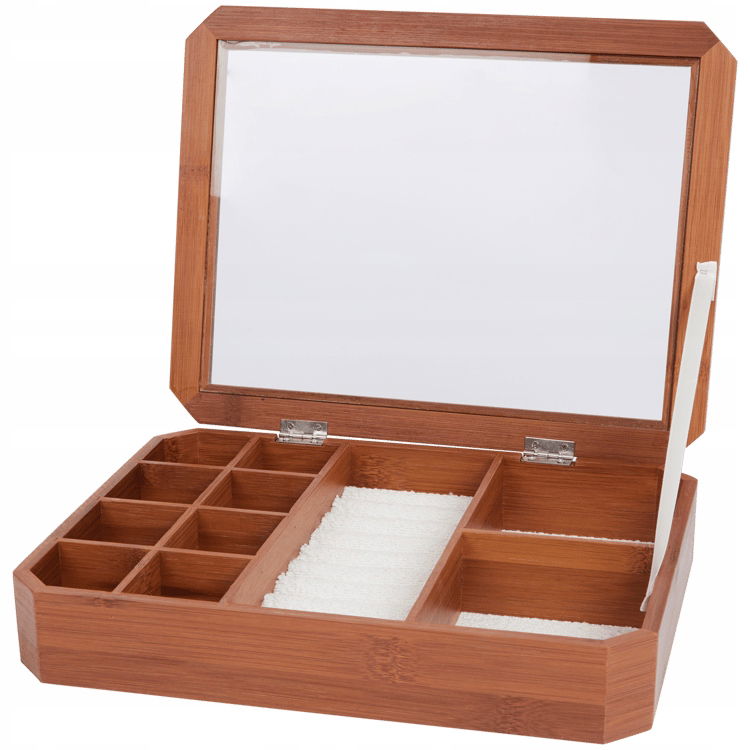 ŁADNA BAMBUSOWA SZKATUŁKA NA BIŻUTERIĘ  Z  PRZEGRÓDKAMI