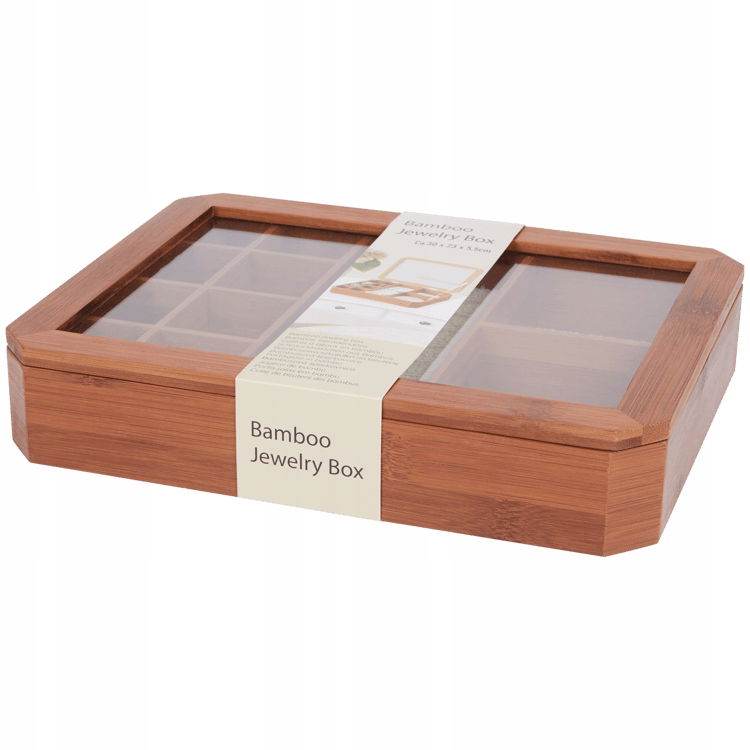 SZKATUŁKA DUŻA EFEKTOWNA BAMBUSOWA NA BIŻUTERIĘ PRZEGRÓDKI 30 x 32 x 5,5 cm
