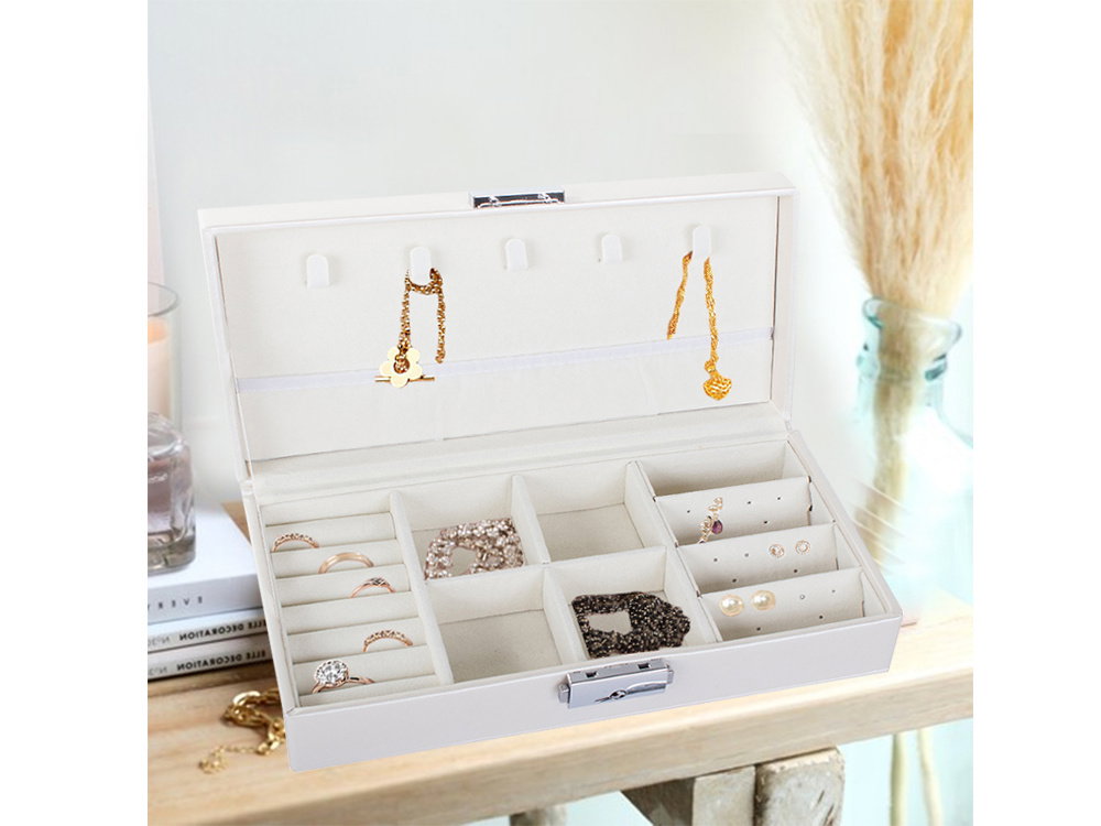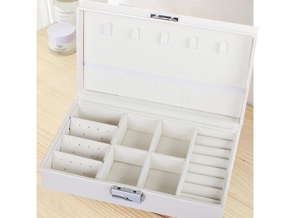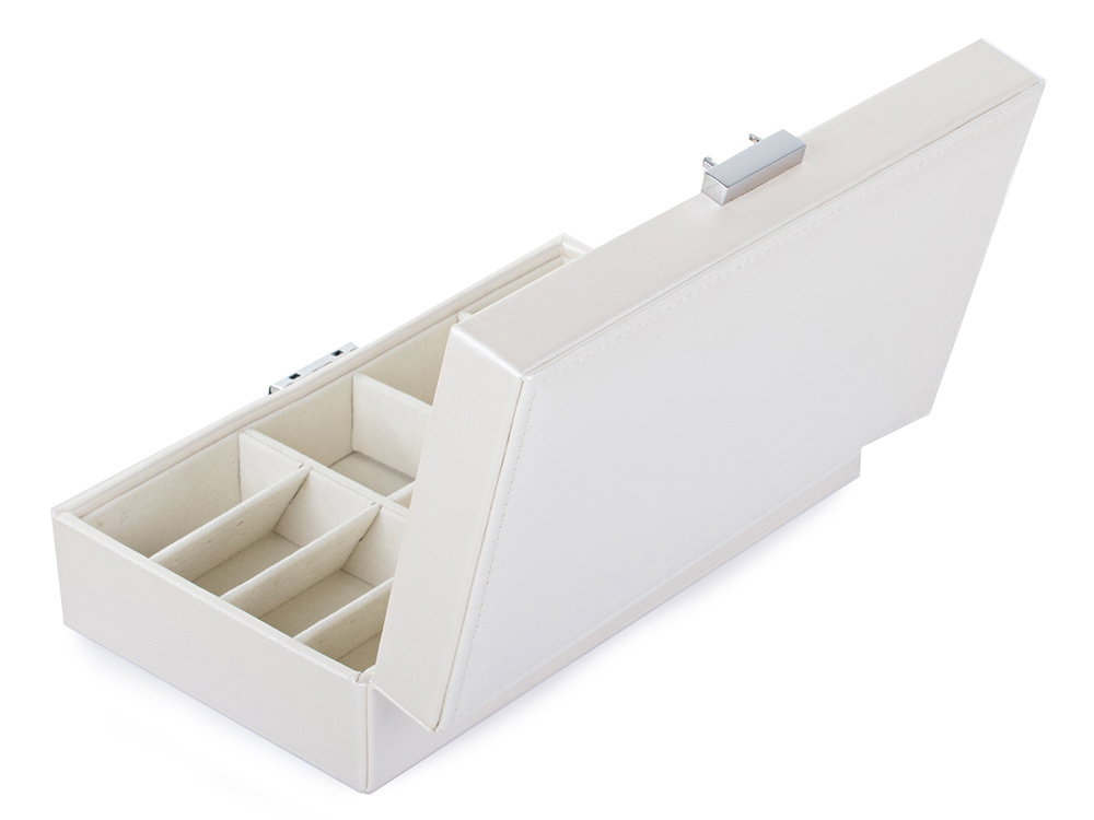 Znajdziemy bardzo dużo miejsca na biżuterię. Po wyjęciu kratownicy, można przechować większe przedmioty, takie jak zegarki, bransoletki lub okulary.
