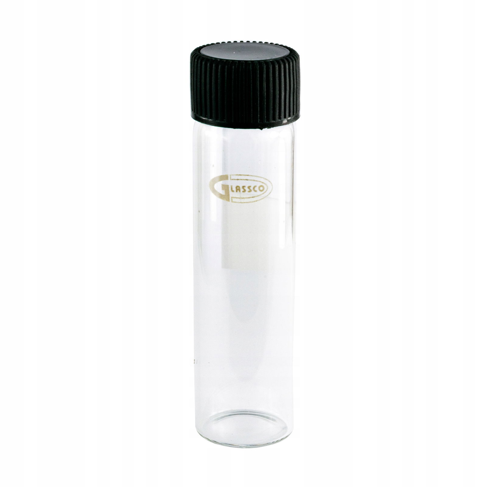 Probówka szklana GLASSCO z płaskim dnem oraz zakrętką w zestawie. Wykonana ze szkła boro 3.3 Probówka jest odporna na czynniki chemiczne termiczne.