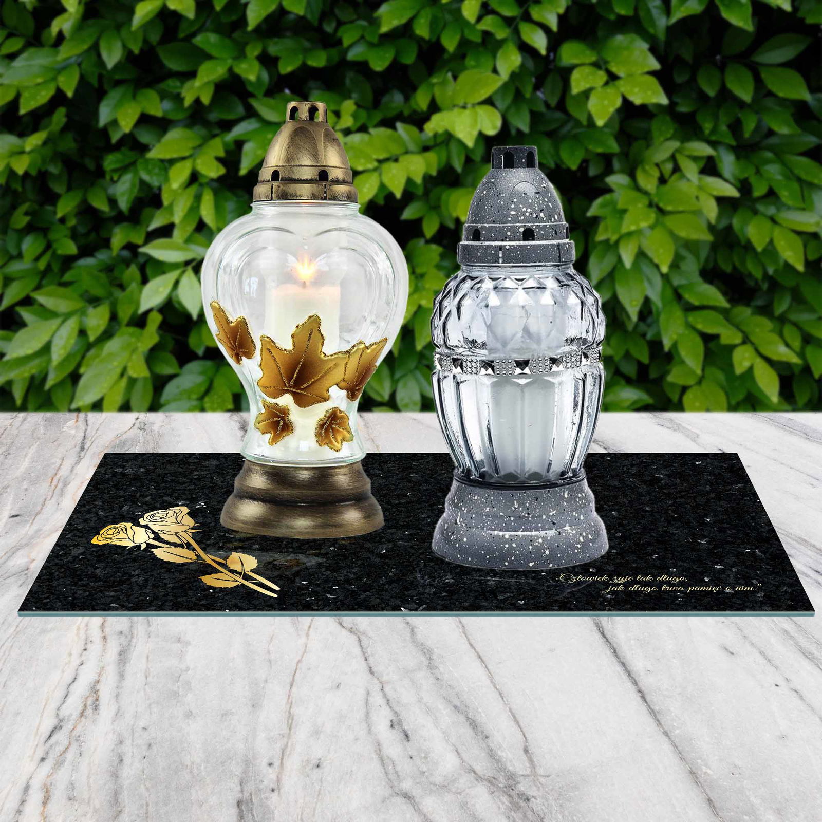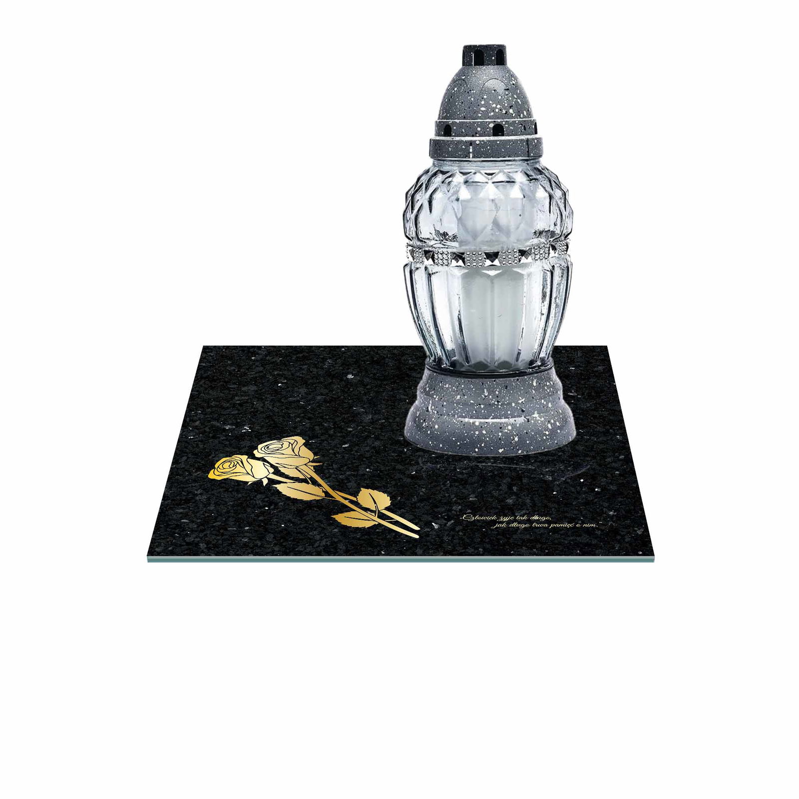 SZKLANA PODSTAWKA POD ZNICZE 30x30 cm dostępna z napisem - możliwość wyboru kroju pisma.