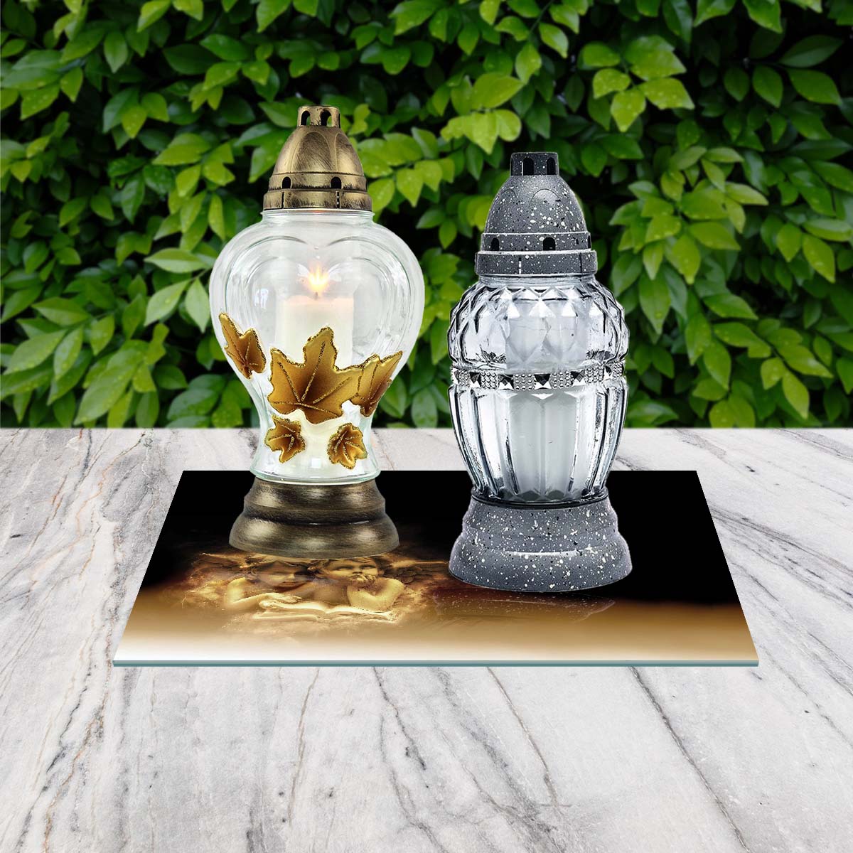 SZKLANA PODSTAWKA POD ZNICZE Z DEDYKACJĄ 40x40cm 553h Aniołek, czarne tlo