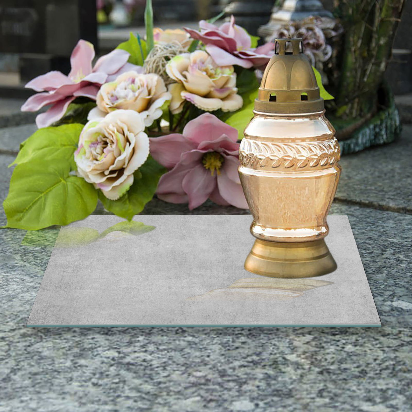 SZKLANA PODSTAWKA POD ZNICZE Z DEDYKACJĄ 40x40cm Beton 130h