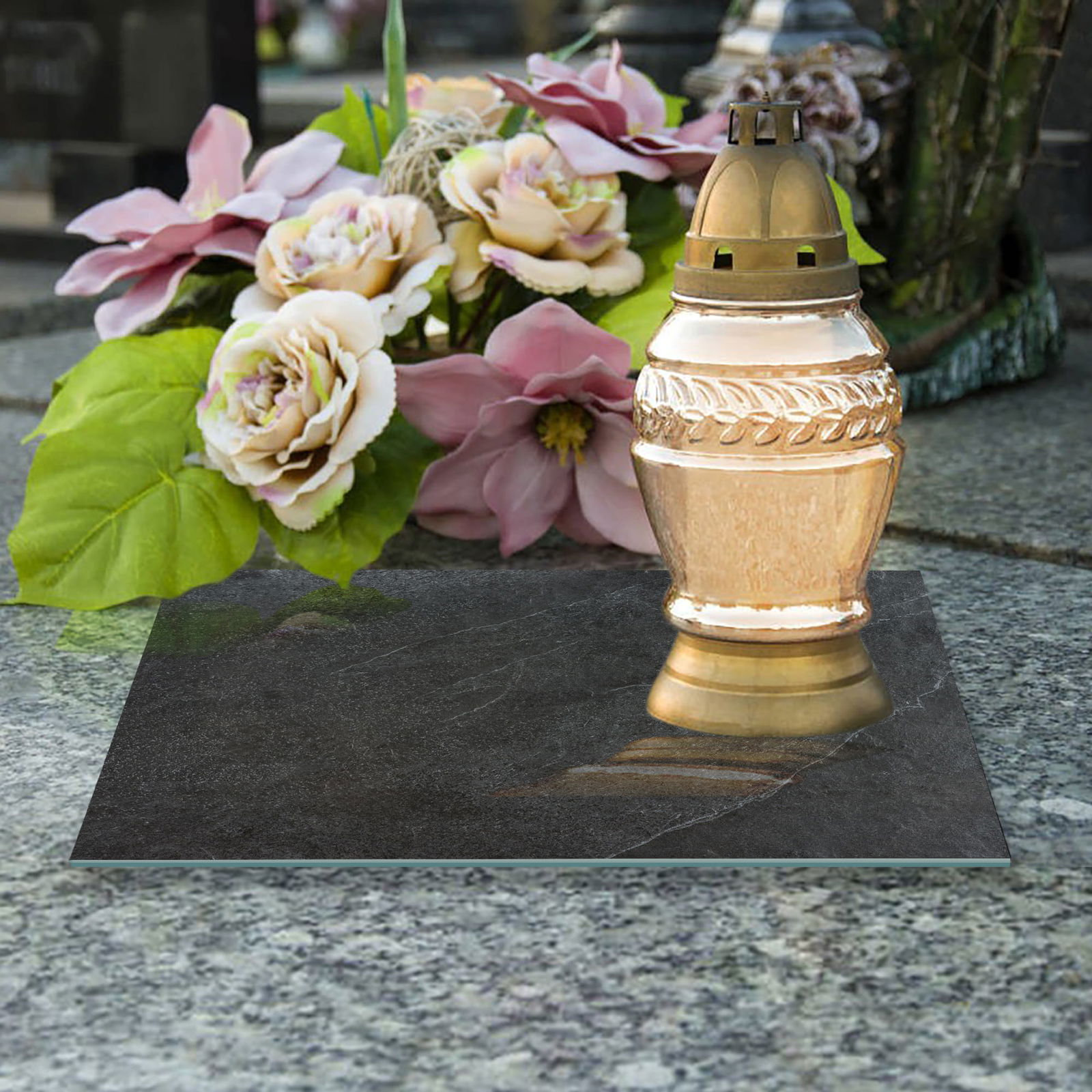 - Trwałość - podstawka pod znicze wykonana jest z certyfikowanego szkła hartowanego.