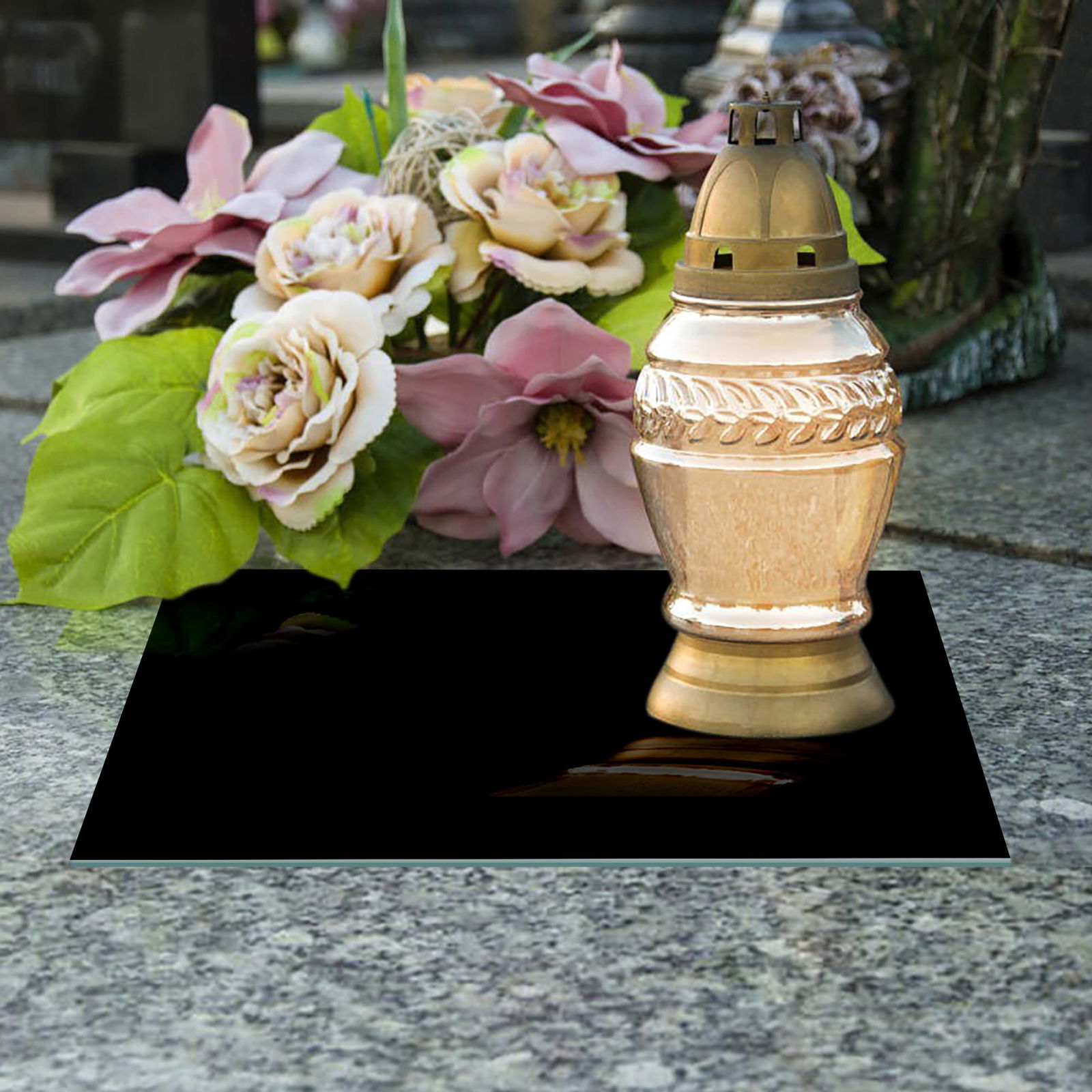 SZKLANA PODSTAWKA POD ZNICZE Z DEDYKACJĄ 50x50 cm Czerń 486P