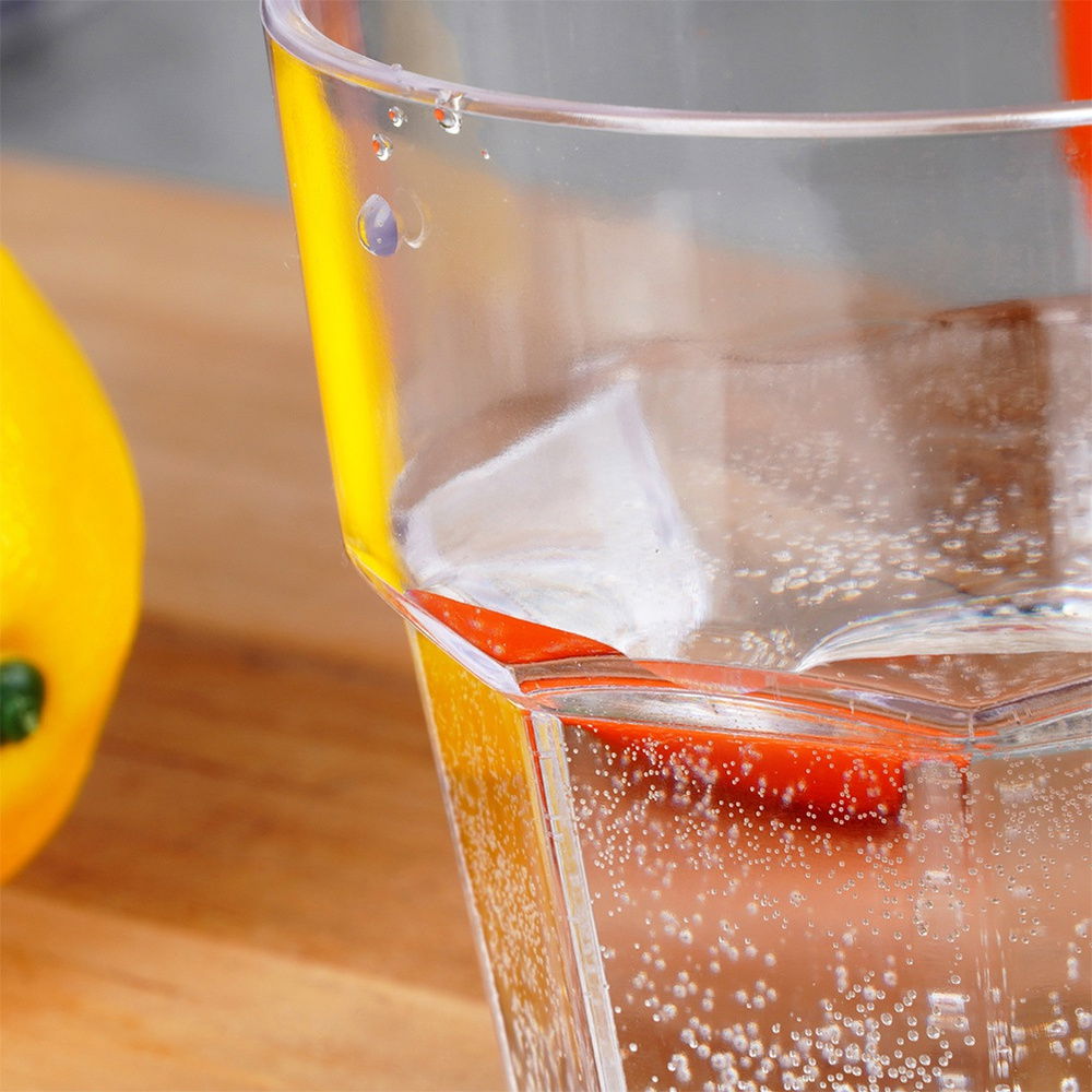 Wielorazowa i nietłukąca - Wykonana z najwyższej jakości przezroczystego akrylu. Szklanka jest wytrzymała i nietłukąca. Jej wygląd niemal idealnie imituje szkło, dzięki czemu prezentuje się elegancko. Szklanka jest wytrzymała i odporna na uszkodzenia.
