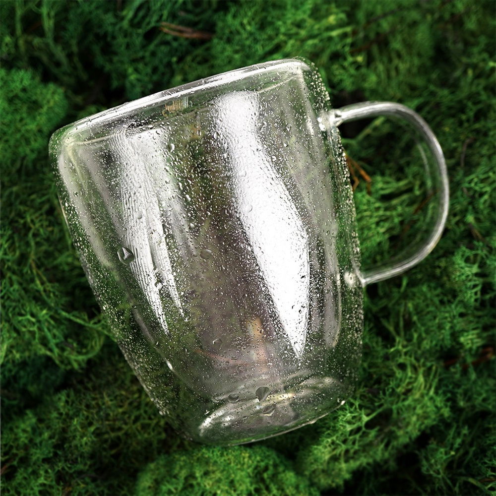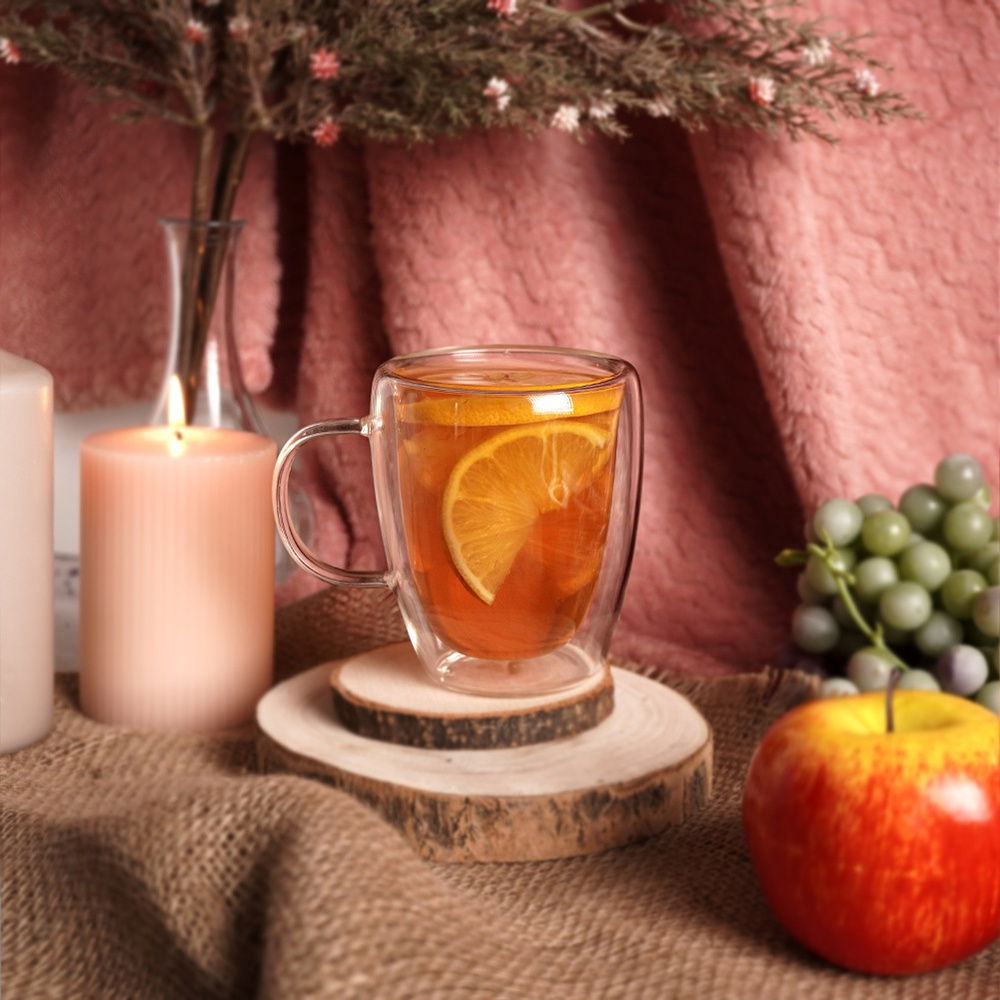 Szklanka termiczna z podwójną ścianką. Szklanka ma nowoczesny design i efekt wizualny po wlaniu napoju jest niesamowity. Dzięki podwójnej ściance gorący napój nie będzie nas parzył w ręce i szklanka pozwoli na utrzymanie dłużej ciepłej temperatury, to samo dotyczy chłodnych napojów. Idealna do picia ulubionej kawy, herbaty i innych napojów. Szklanka sprawdzi się zarówno dla dorosłych, jak i dla dzieci. Nie nadaje się do mycia w zmywarce do naczyń. Szklanka pakowana jest w kartonik, więc jest idealnym pomysłem na prezent.