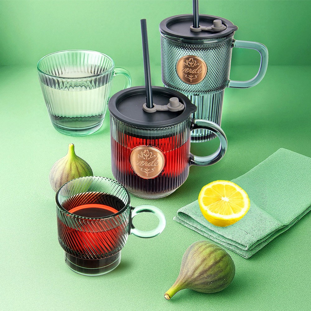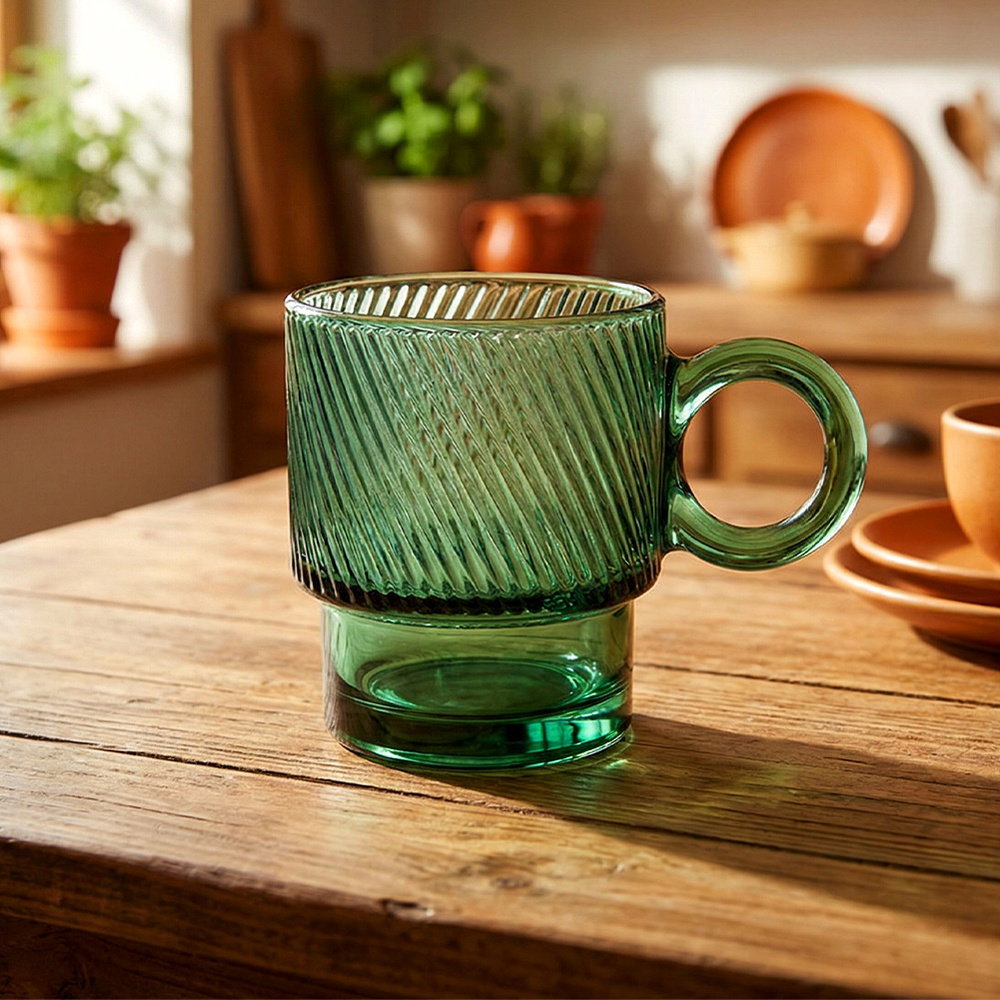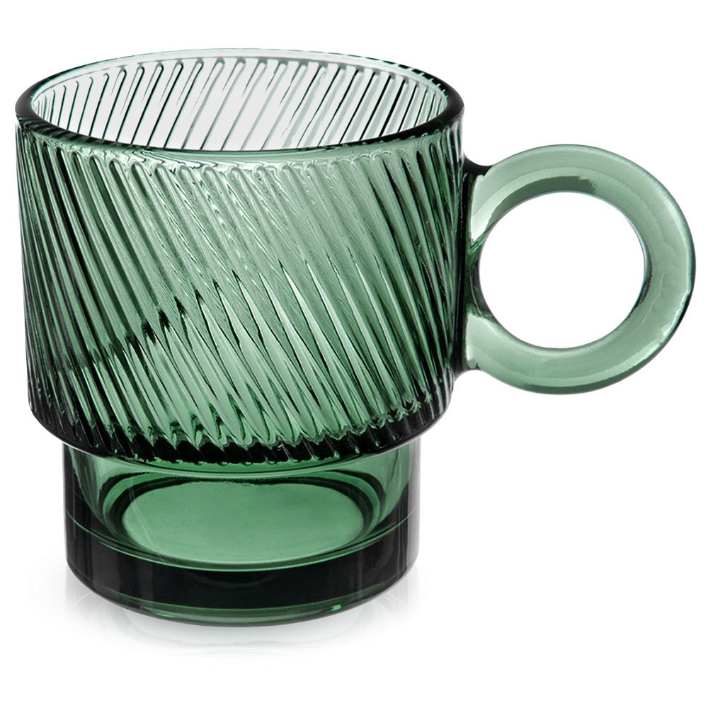 Szklanka Zielona do Picia Kawy Herbaty Napojów Ryflowana z Uchwytem 300 ml