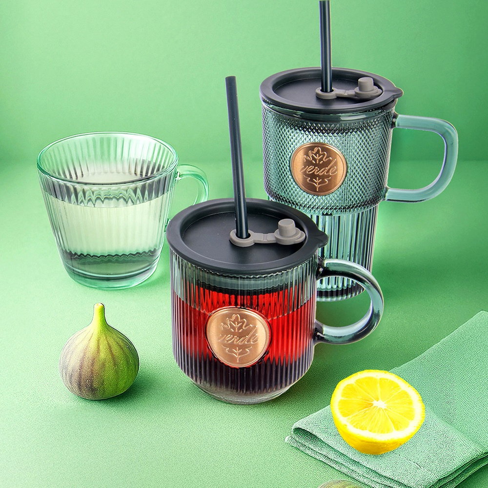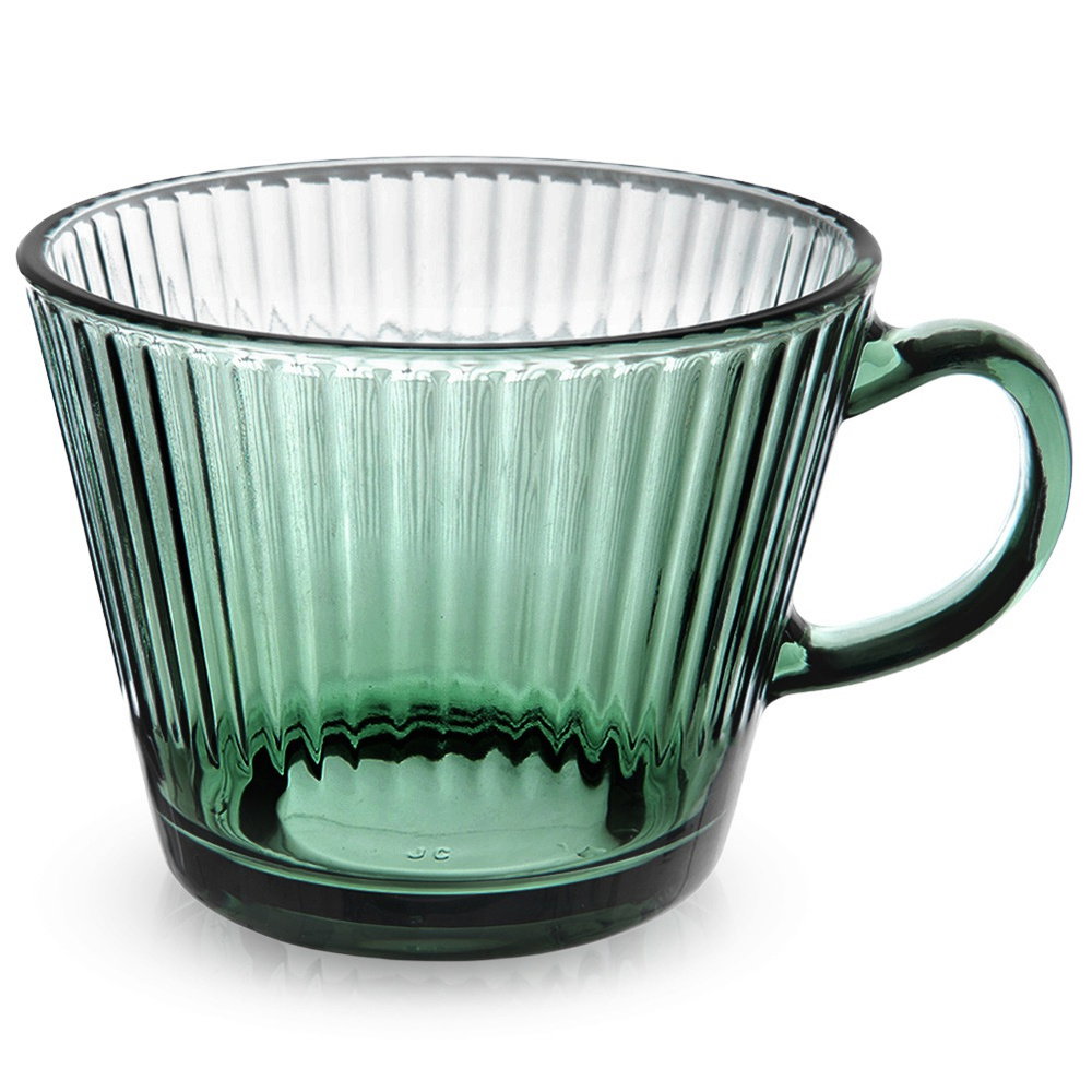 Szklanka Zielona do Picia Kawy Herbaty Napojów Ryflowana z Uchwytem 420 ml