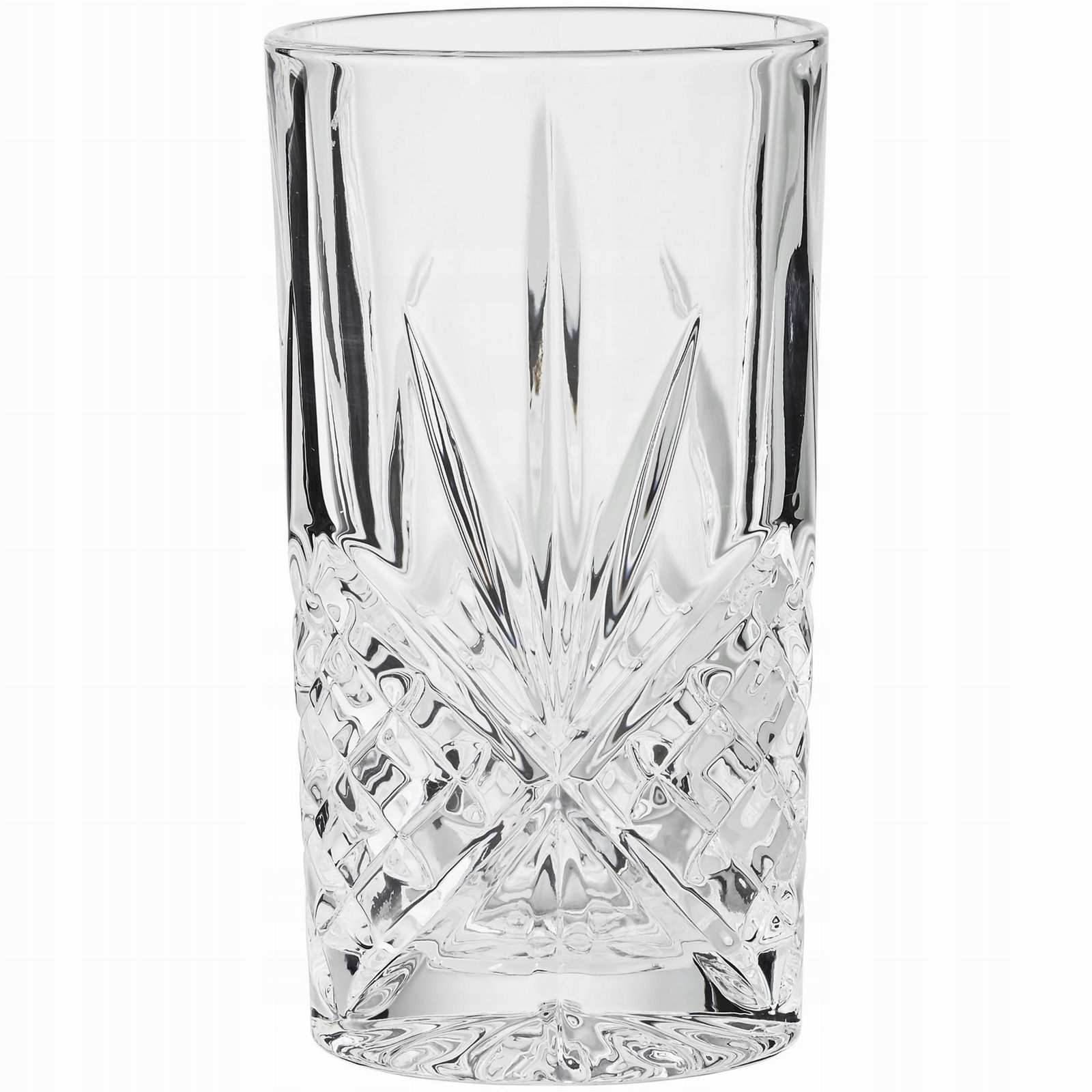 Pojemne szklanki typu long drink na pyszne soki, napoje lub drinki. Szklanka ozdobiona wytrawianym wzorem w stylu szlifowanych kryształów.