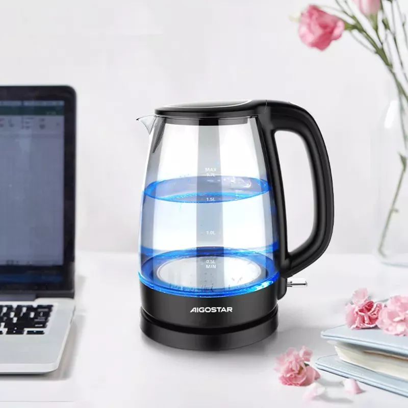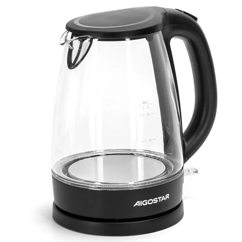 Lekko i ładnie wyglądający czajnik. Gruby szklany korpus wykonany z materiału przeznaczonego do kontaktu z żywnością, bezpieczny i pozbawiony nieprzyjemnych zapachów. Odporny na wysokie temperatury i korozję. Na gładkiej szklanej ściance czajnika nie rozwijają się bakterie i brud, jest łatwy w czyszczeniu. Jednorazowo zaspokoi zapotrzebowanie 3-5 osób, przed zagotowaniem wody należy napełnić odpowiednią ilością wody, aby jej nie marnować. Wbudowany termostat wysokiej jakości zapewnia pełne zagotowanie wody, automatycznie wyłącza się podczas gotowania i w porę aktywuje zabezpieczenie przed gotowaniem na sucho. Korpus można połączyć z podstawą i ustawić pod dowolnym kątem.