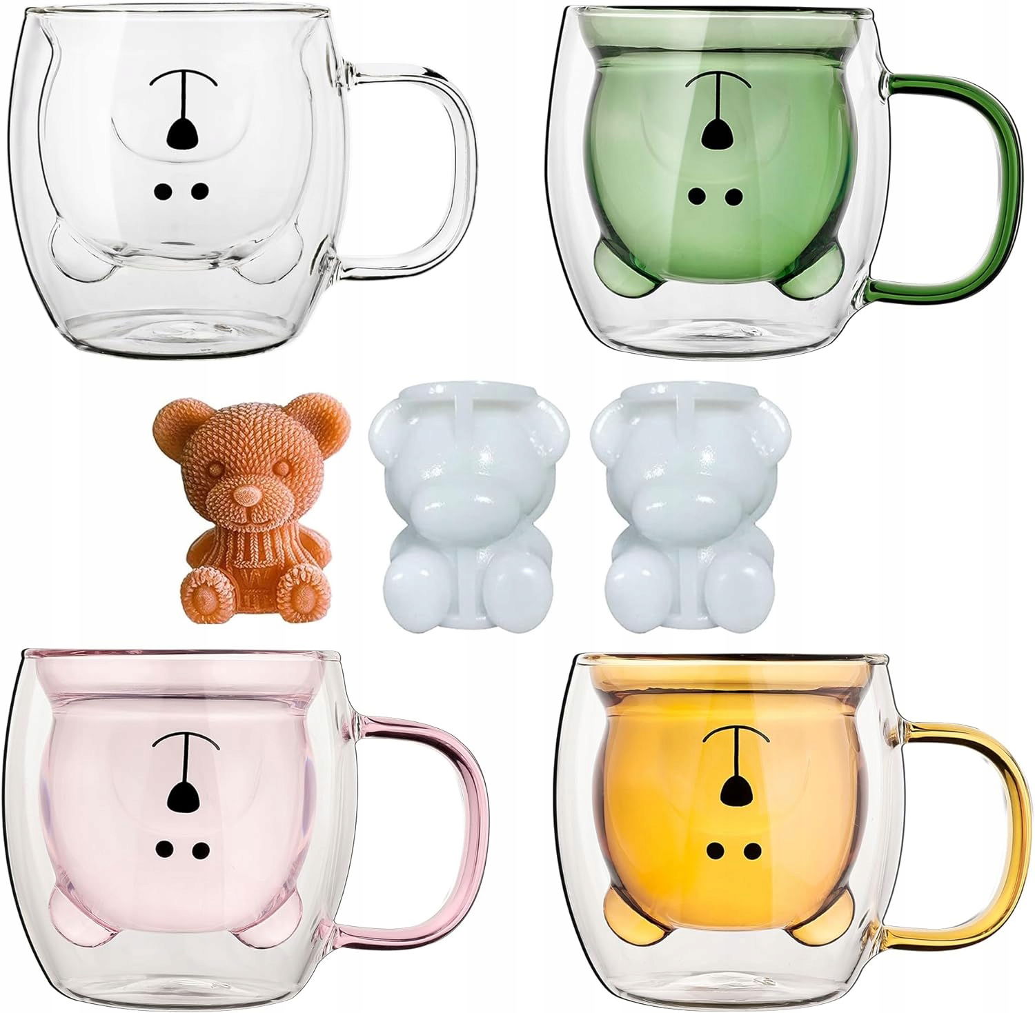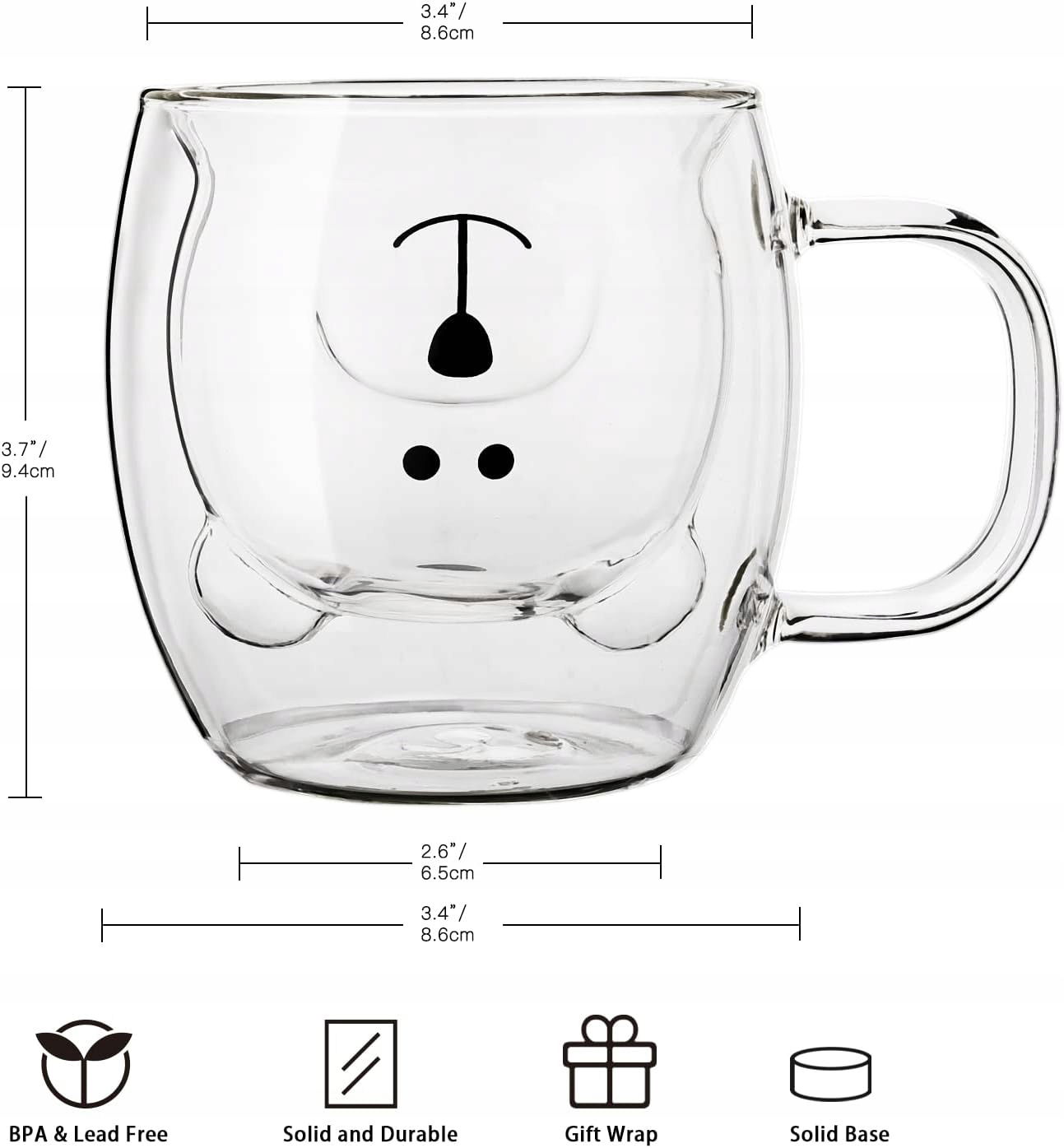 【WYSOKA JAKOŚĆ】 Nasze kubki do kawy ze słodkim misiem są wykonane ze szkła borokrzemianowego, które lepiej dostosowuje się do temperatury ciepłej i zimnej, jest bezpieczniejsze w użyciu i nie pęka przy zmianie między zimną i gorącą wodą.