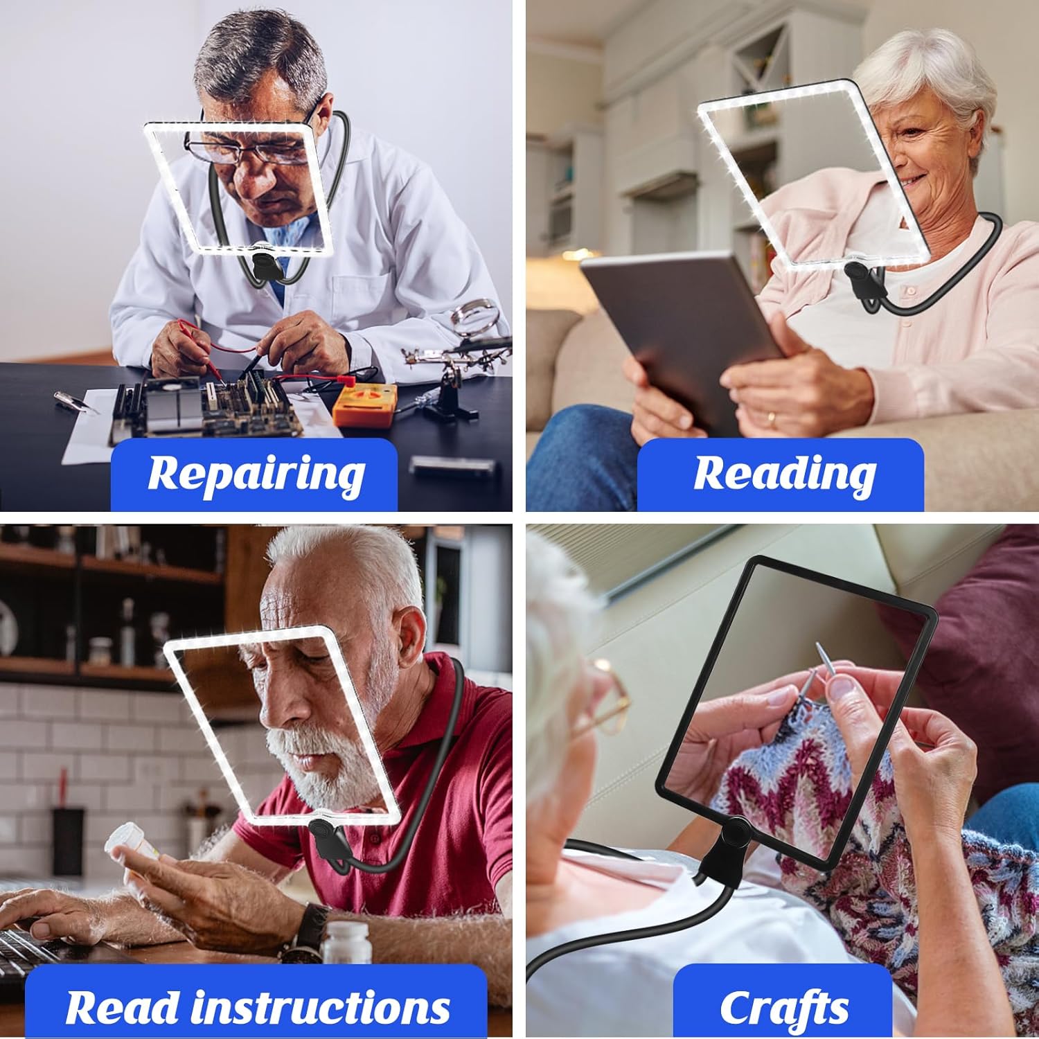 To szkło powiększające do czytania jest bardzo odpowiednie jako prezent dla osób słabo widzących, mogą czytać, wykonywać rękodzieło, naprawiać, śledzić małe wzory i inne czynności bez patrzenia w dół, idealne do długotrwałego użytkowania.