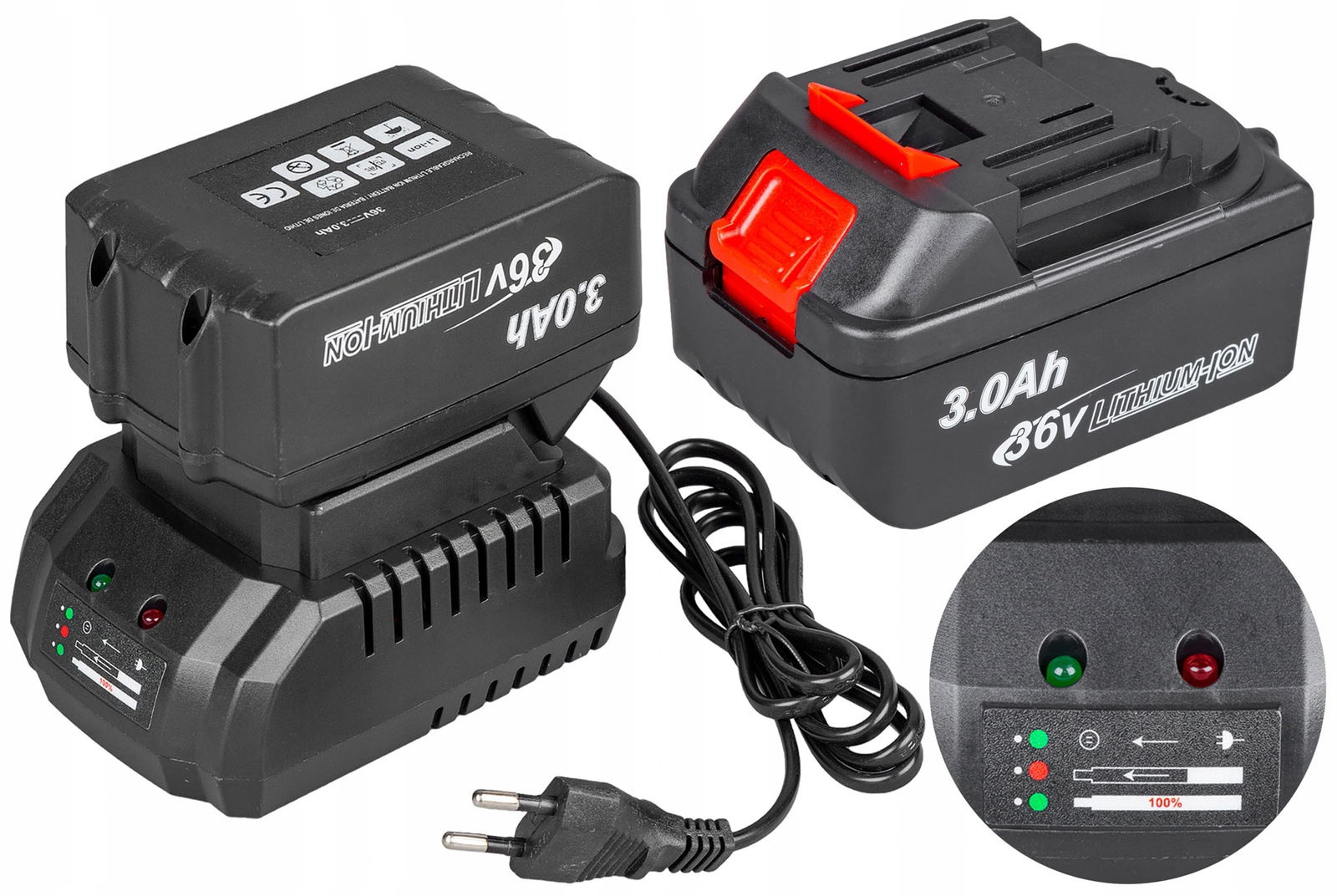 Duża pojemność 3.0Ah zapewnia długą pracę, a brak efektu pamięci pozwala na doładowywanie w dowolnym momencie.