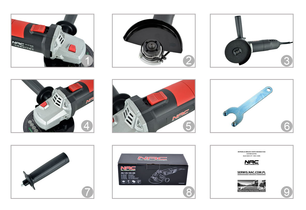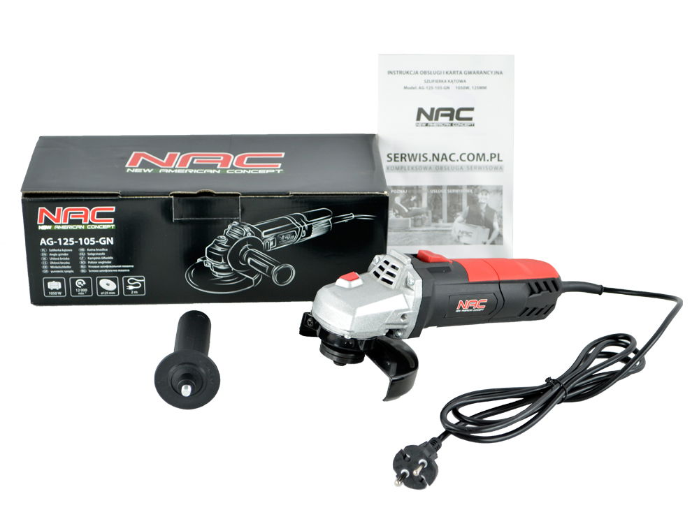 SZLIFIERKA KĄTOWA NAC 1050 W TARCZA 125 MM 12 000 OBR/MIN PORĘCZNA MOCNA