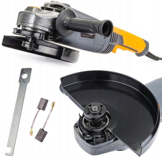 Szlifierka kątowa firmy POWERMAT przeznaczona do cięcia, szlifowania, oczyszczania materiałów takich jak: metal, drewno, beton, tworzywa sztuczne, i wiele innych. Znajduje szerokie zastosowanie w warsztacie, podczas prac remontowych i budowlanych. Wyposażona w bardzo mocny i wydajny silnik 3000W który z łatwością uzyskuje prędkość na poziomie 6500 obr/min, funkcja SOFT-START zapewnia płynne zwiększanie obrotów od zera do maksymalnej wartości przy starcie. Obrotowa rękojeść ułatwia pracę w każdej pozycji.