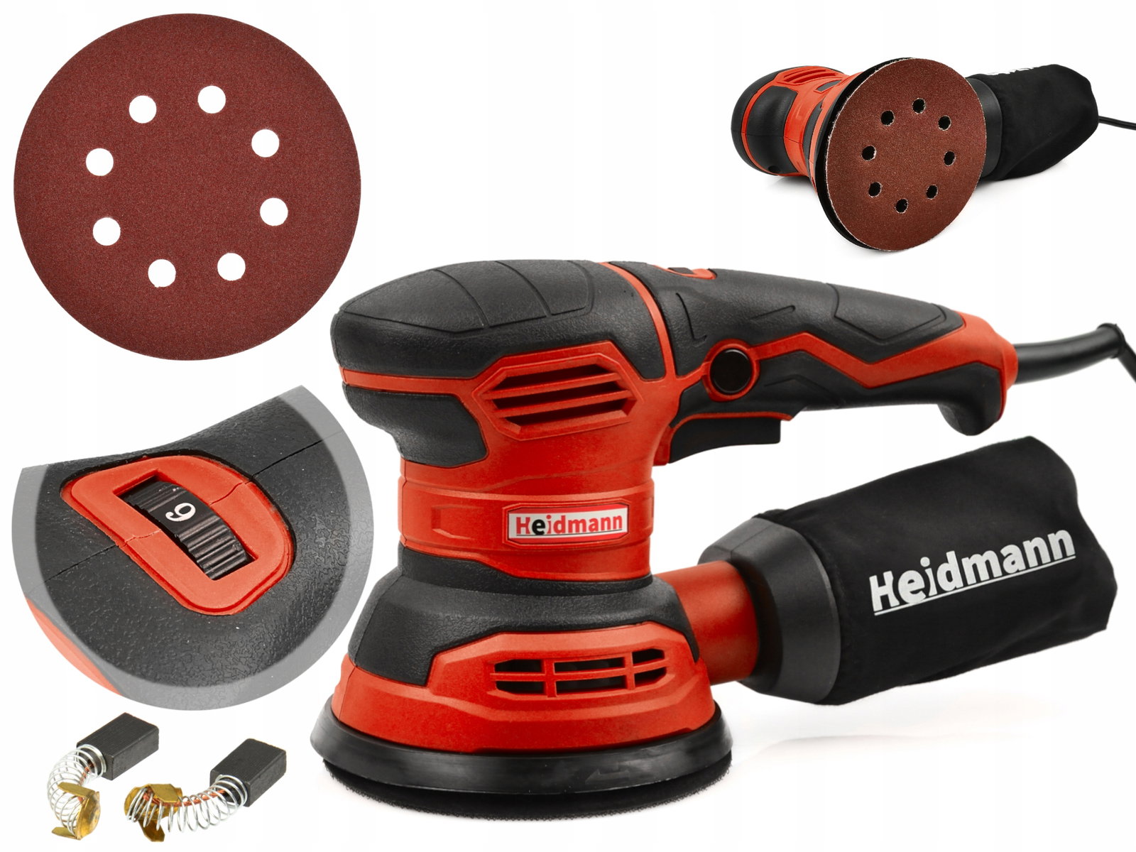 ➤ Szlifierka HEIDMANN o mocy 1200W i maksymalnej prędkości obrotowej 12000rpm to dobrze zaprojektowane narzędzie pracujące z wykorzystaniem mimośrodowego ruchu oscylacyjnego, odpowiedzialnego za równomierną obróbkę powierzchni zewnętrznych, dzięki czemu nie musimy się martwić o powstawanie bruzd i nierówności