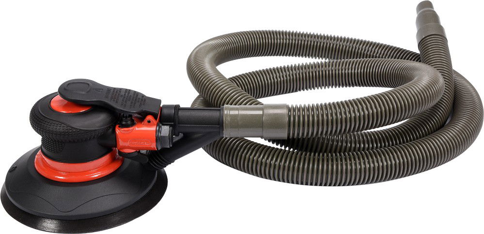 Szlifierka mimośrodowa pneumatyczna jest narzędziem zasilanym strumieniem sprężonego powietrza pod odpowiednim ciśnieniem. W zestawie znajduje się wąż umożliwiający podłączenie szlifierki pod odkurzacz - oraz specjalny worek na urobek. Oscylacja 5mm zapewnia optymalną obróbkę powierzchni. Dzięki środkom ściernym nakładanym bezpośrednio na tarcze możliwe jest szlifowanie i polerowanie różnego rodzaju materiałów. Szlifierka jest wyposażona w złączkę pozwalającą przyłączyć ją do układu pneumatycznego. Szlifierka jest wyposażona w tarczę o średnicy 150 mm. Do montażu tarczy nie są wymagane żadne narzędzia dodatkowe.