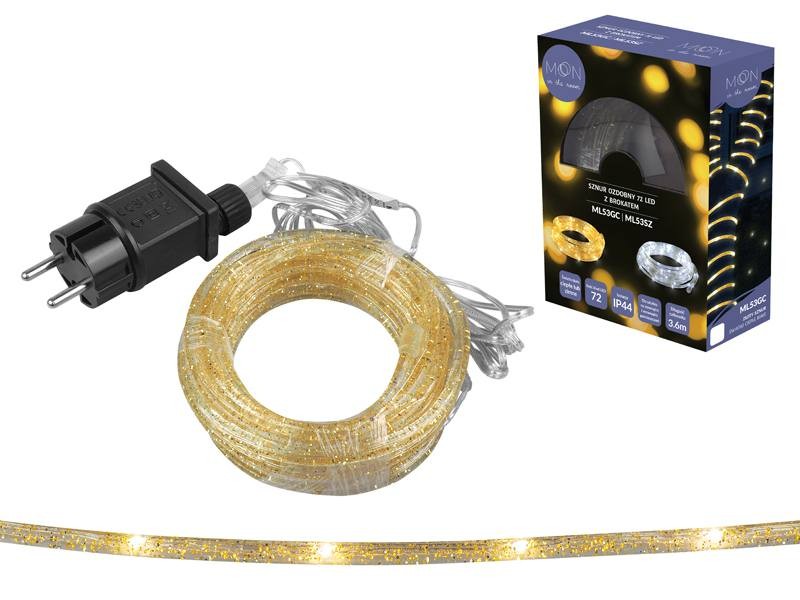Sznur ozdobny 72 LED z brokatem złoty światło ciepłe białe