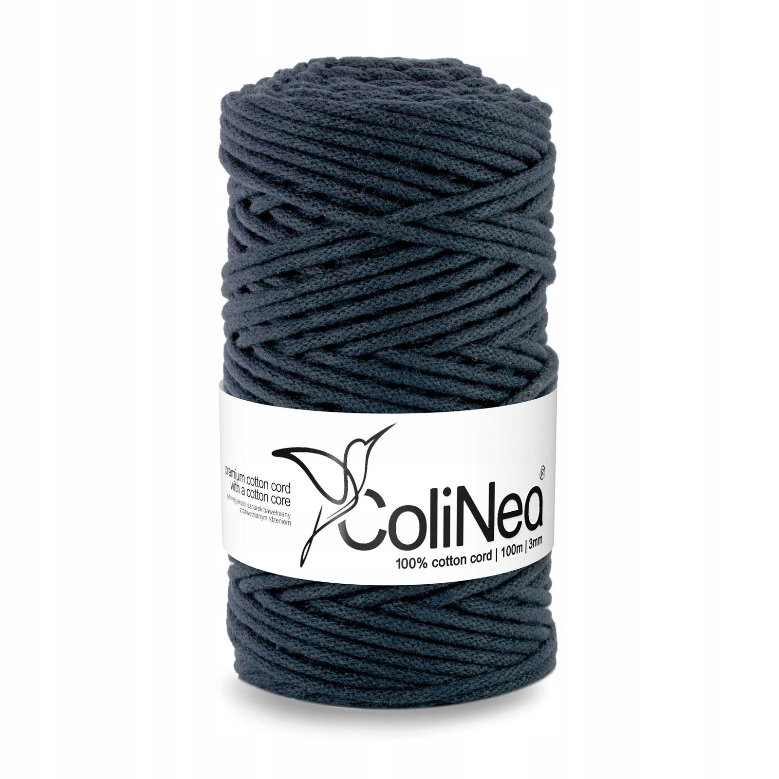 Sznurek do makramy 3 mm pleciony 100% bawełniany 100 m atramentowy ColiNea