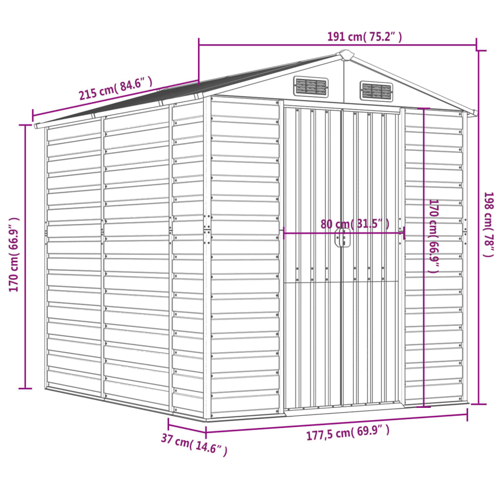 Szopa ogrodowa, antracytowa, 191x215x198 cm, stal galwanizowana