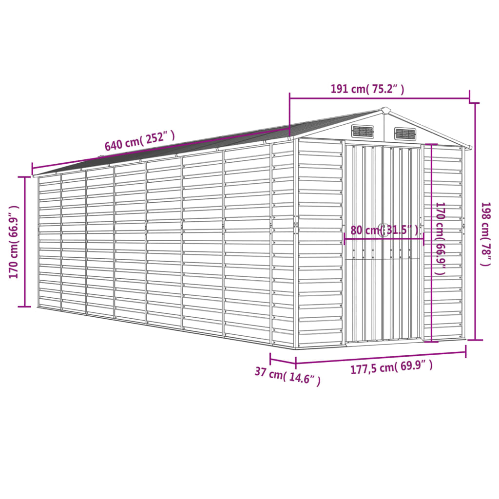 Szopa ogrodowa, zielona, 191x640x198 cm, stal galwanizowana