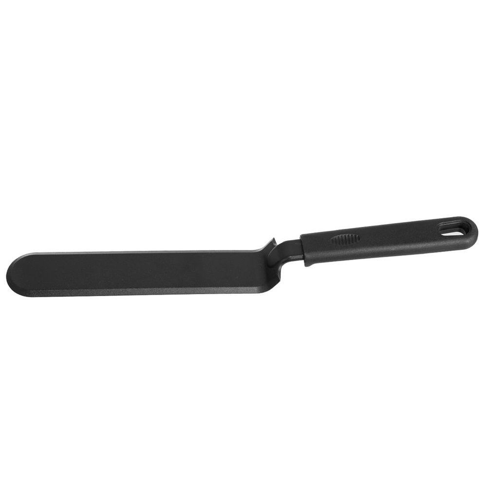 Szpatułka kuchenna przydatna w każdej kuchni. Solidnie wykonana z wytrzymałego materiału. Niezbędna w kuchni podczas gotowania lub pieczenia ciast. Z jej pomocą z łatwością nałożymy kremy na torty lub ciasta. Dodatkowo, umożliwia wygodne obracanie naleśników na patelni oraz unikanie poparzeń. Wpasuje się zarówno do tradycyjnego, jak i nowoczesnego wnętrza.