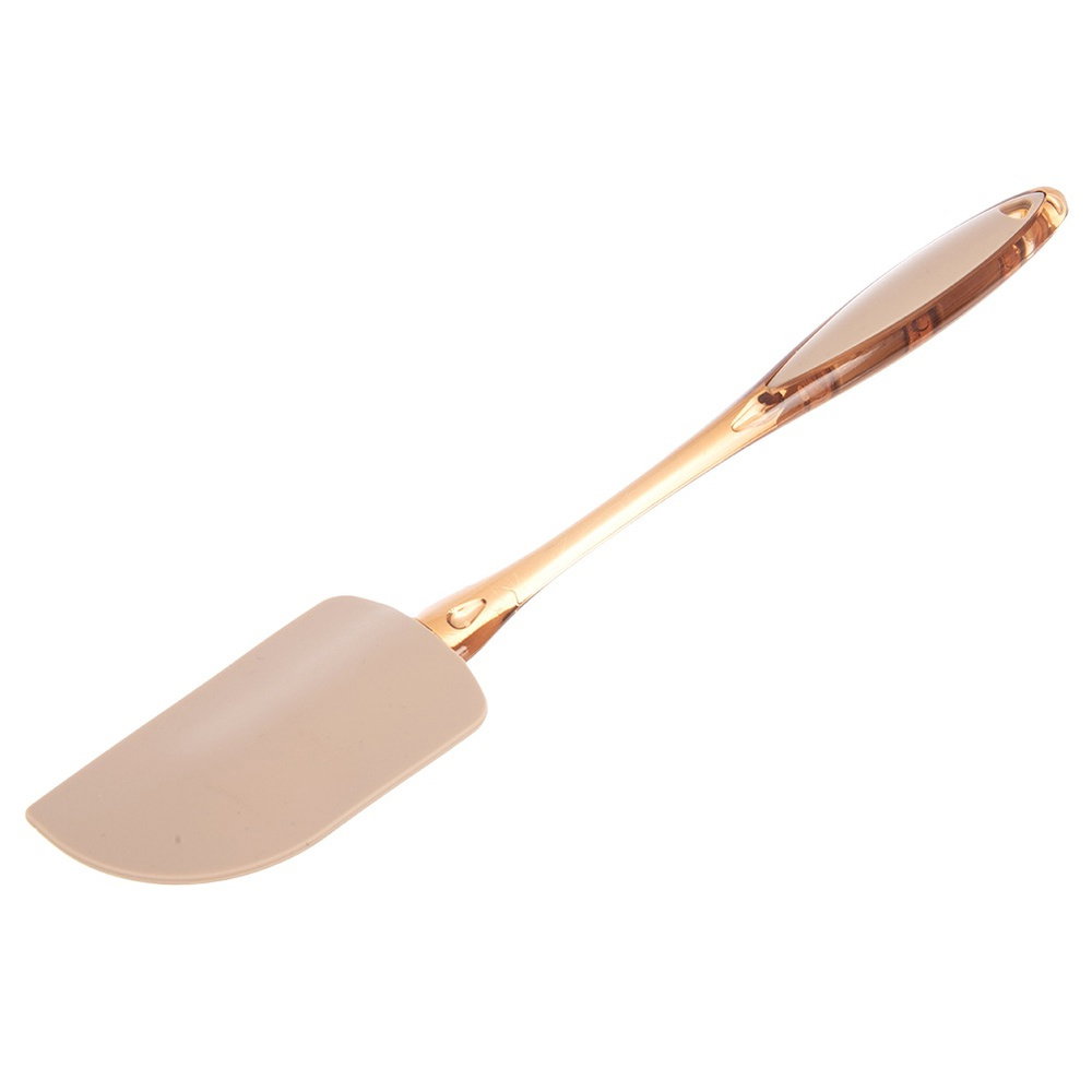 WYKONANA Z SILIKONU - Łopatka została wykonana z wytrzymałego silikonu w beżowym kolorze. Uchwyt wykonany z tworzywa w transparentnym brązowym kolorze z efektownymi kroplami wody. Silikon jest odporny na wysokie temperatury od -40°C do 220°C, uchwyt odporny od -40°C do 100°C.