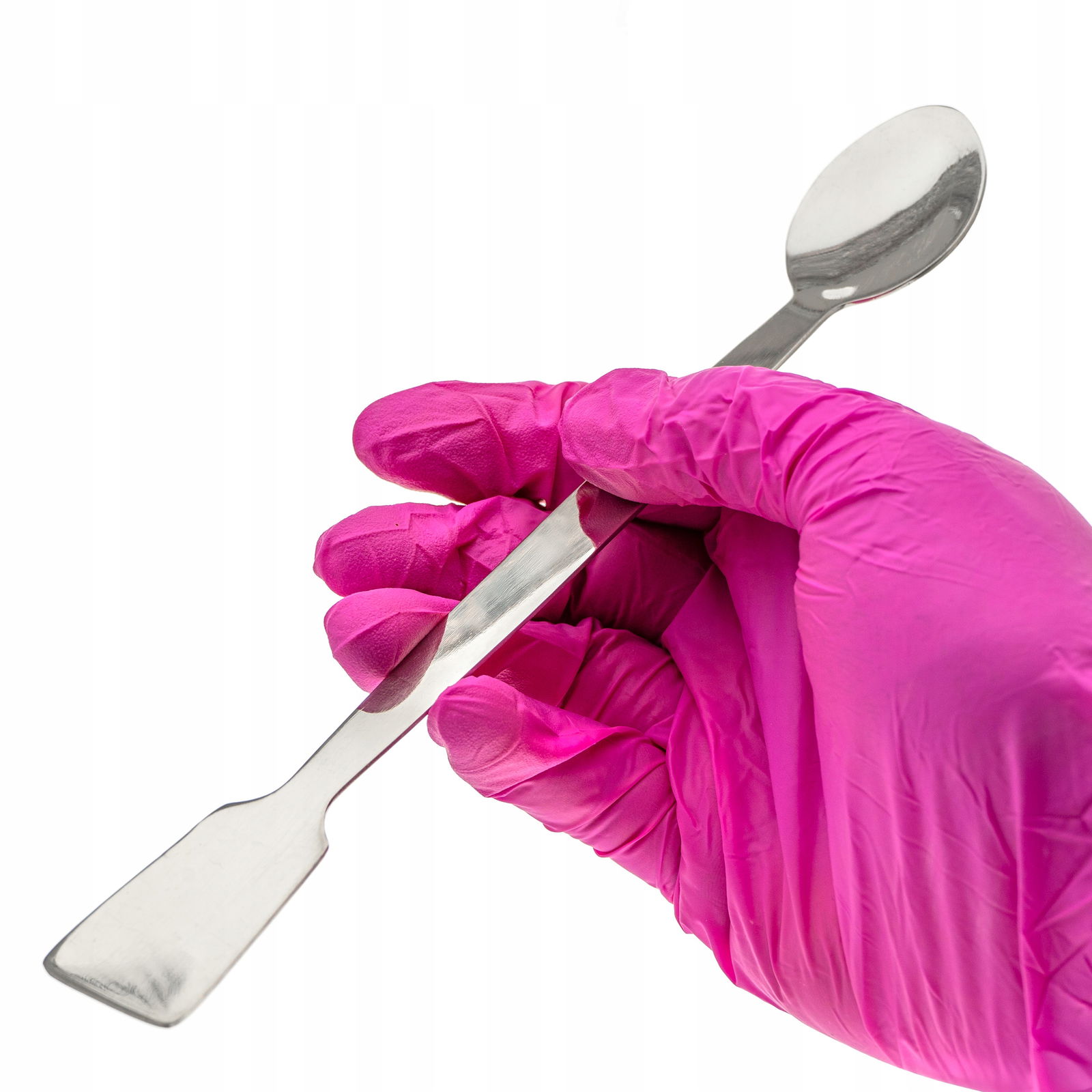 Szpatułko-łyżeczka chemiczna wykonana z polerowanej stali szlachetnej 18/10. Dwustronna: na jednym końcu mamy szpatułkę a po przeciwnej stronie jest łyżka. Można ją poddawać wielokrotnej sterylizacji w autoklawie.