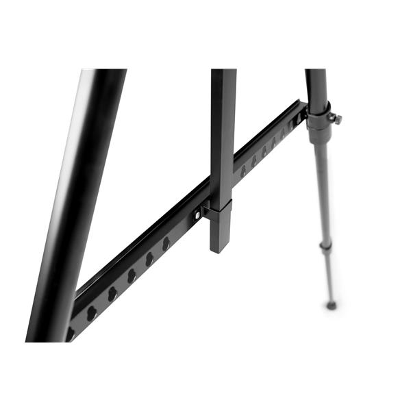 Dzięki możliwości regulacji wysokości (od 110 do 150 cm), idealnie dopasowuje się do różnych rozmiarów grafik. Sprawnie składana, zajmuje niewiele miejsca, co ułatwia jej przenoszenie i przechowywanie. Dodatkowym atutem sztalugi jest eleganckie etui, które chroni ją podczas transportu. Sztaluga jest idealna zarówno do prezentacji grafik na płytach plexi czy hips, jak i do wyświetlania plakatów w ramkach typu OWZ. Produkt jest wygodny w użyciu, trwały i wytrzymały, dzięki czemu będzie służył przez wiele lat. Sztaluga metalowa jest dostępna w kolorze czarnym, co dodatkowo podkreśla jej elegancki charakter. Jest to idealna opcja dla osób ceniących sobie nietuzinkowe rozwiązania i wysoką jakość wykonania.